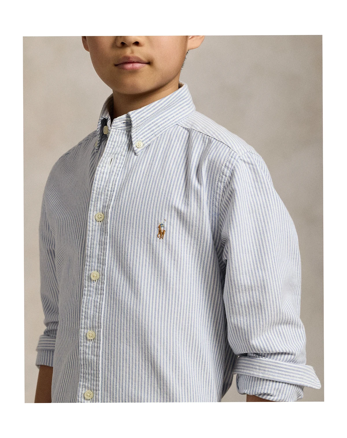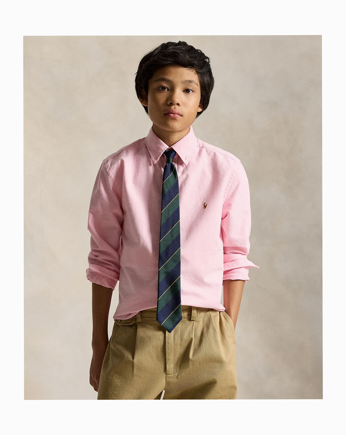 The quintessential Oxford shirt is a must-have for any prepster. Classic details include button-down collar, embroidered pony logo on chest, button cuffs, back pleat and rounded hem.