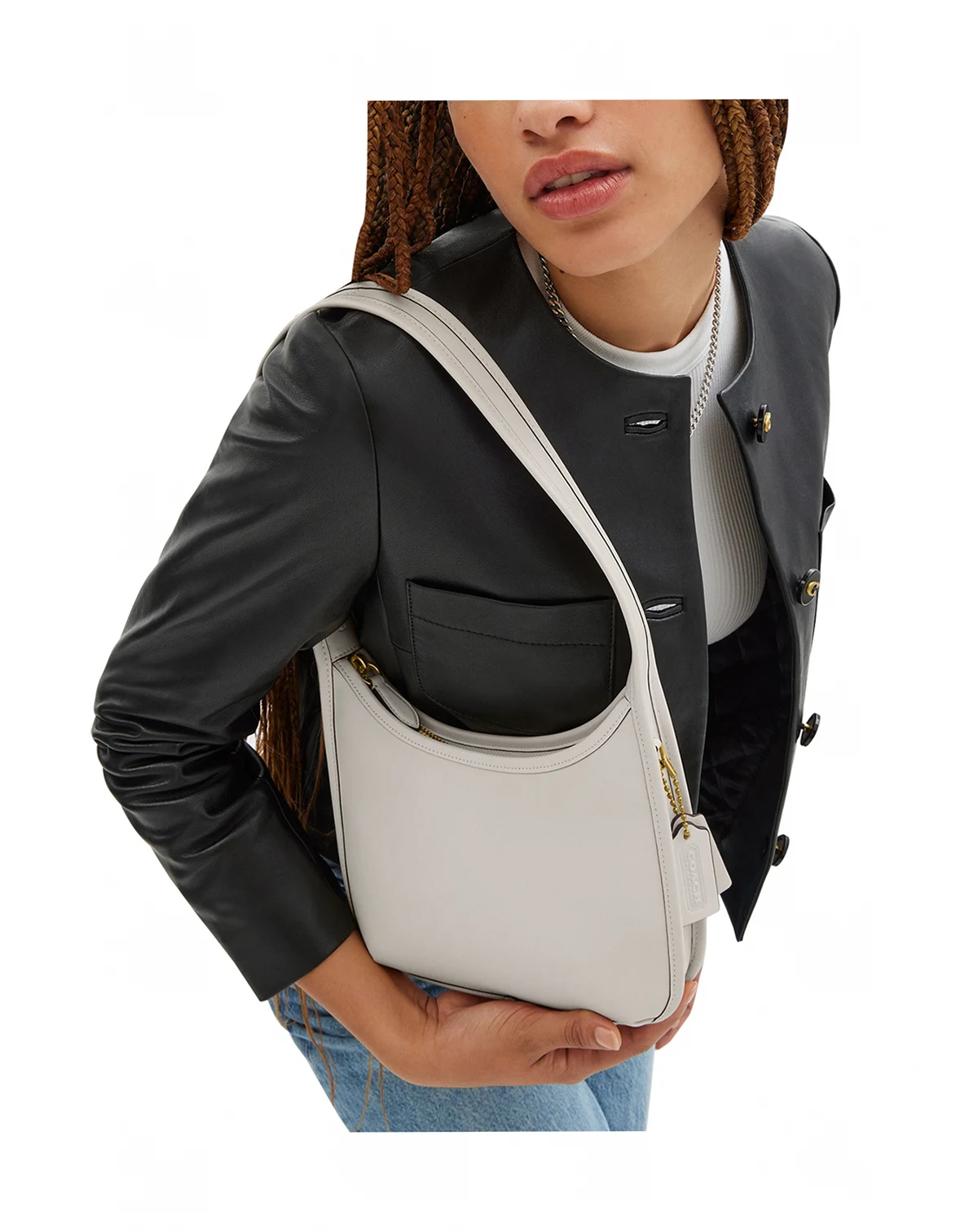 Curve Zip Small Leather Shoulder Bag