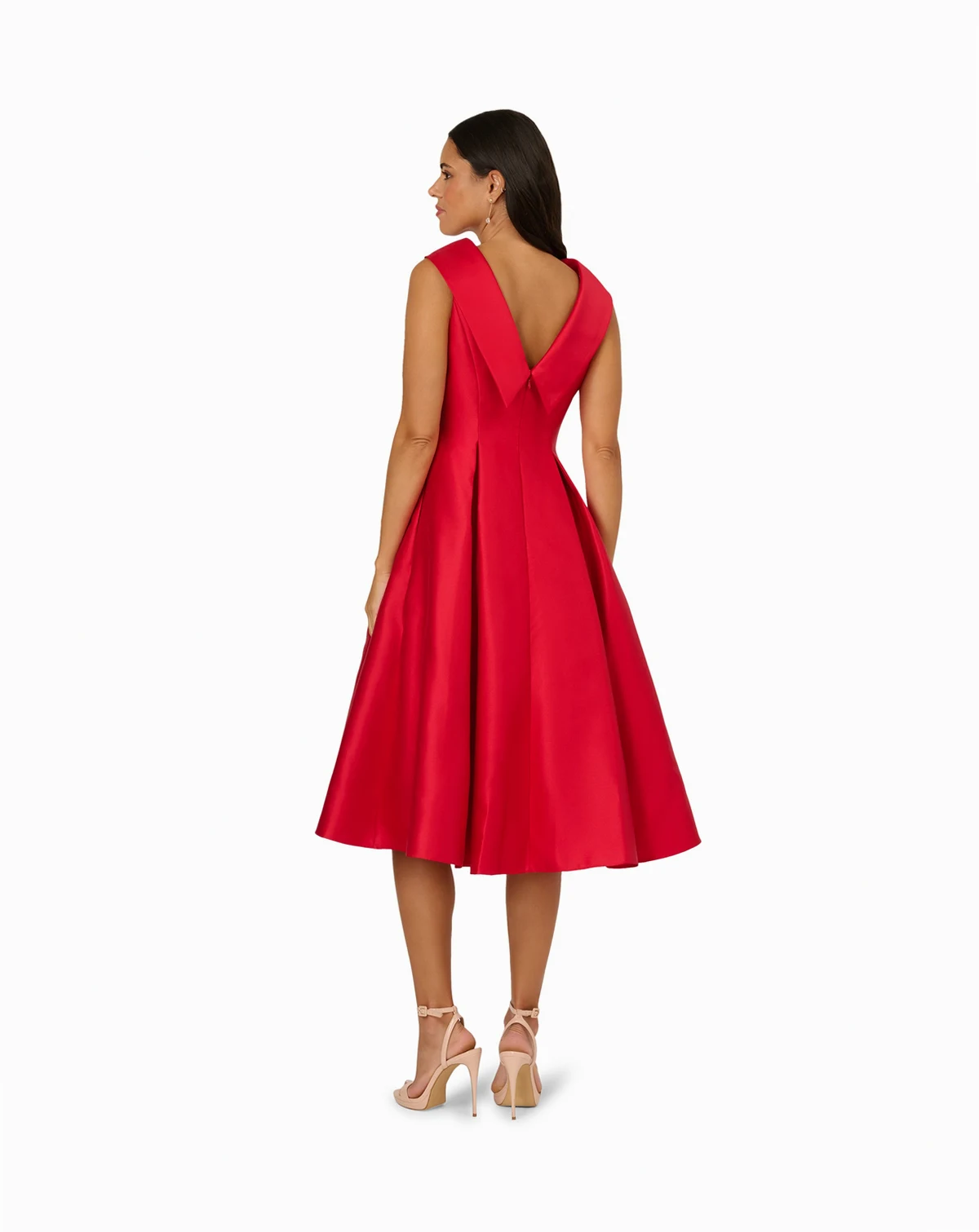 The perfect LBD that every woman needs in her wardrobe, Adrianna Papell's sleeveless fit and flare dress is topped with an elegant collared boat neckline and finished with handy hidden pockets.