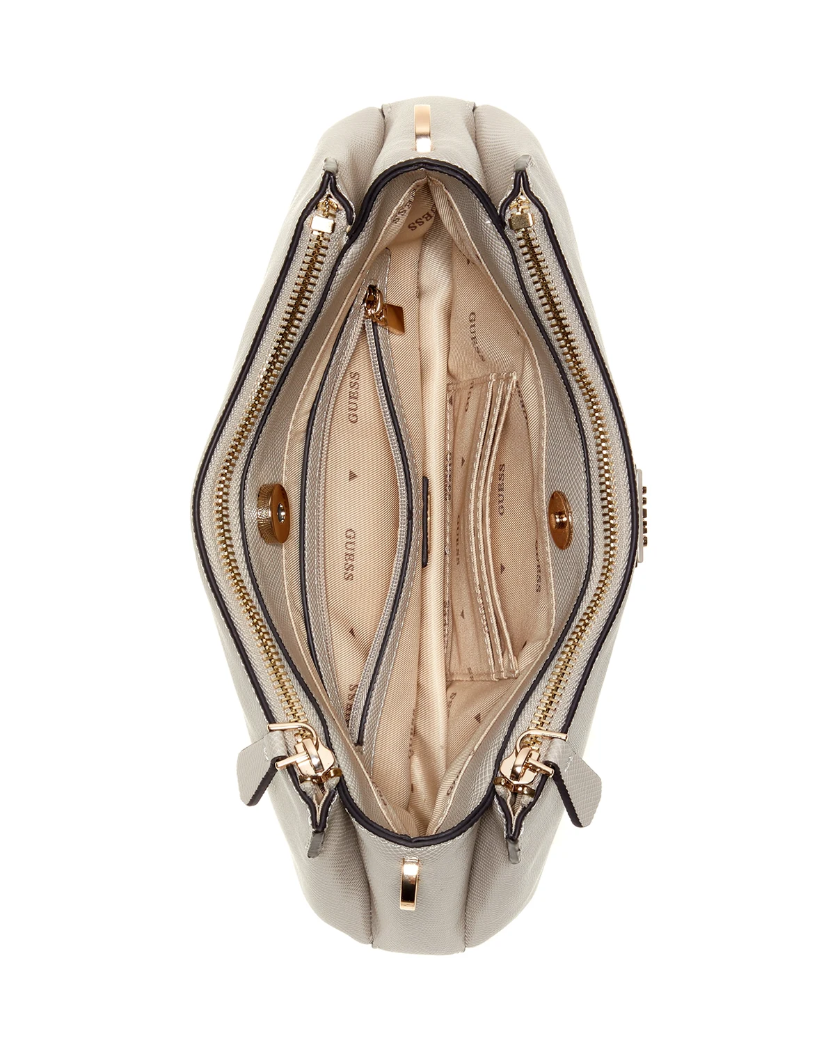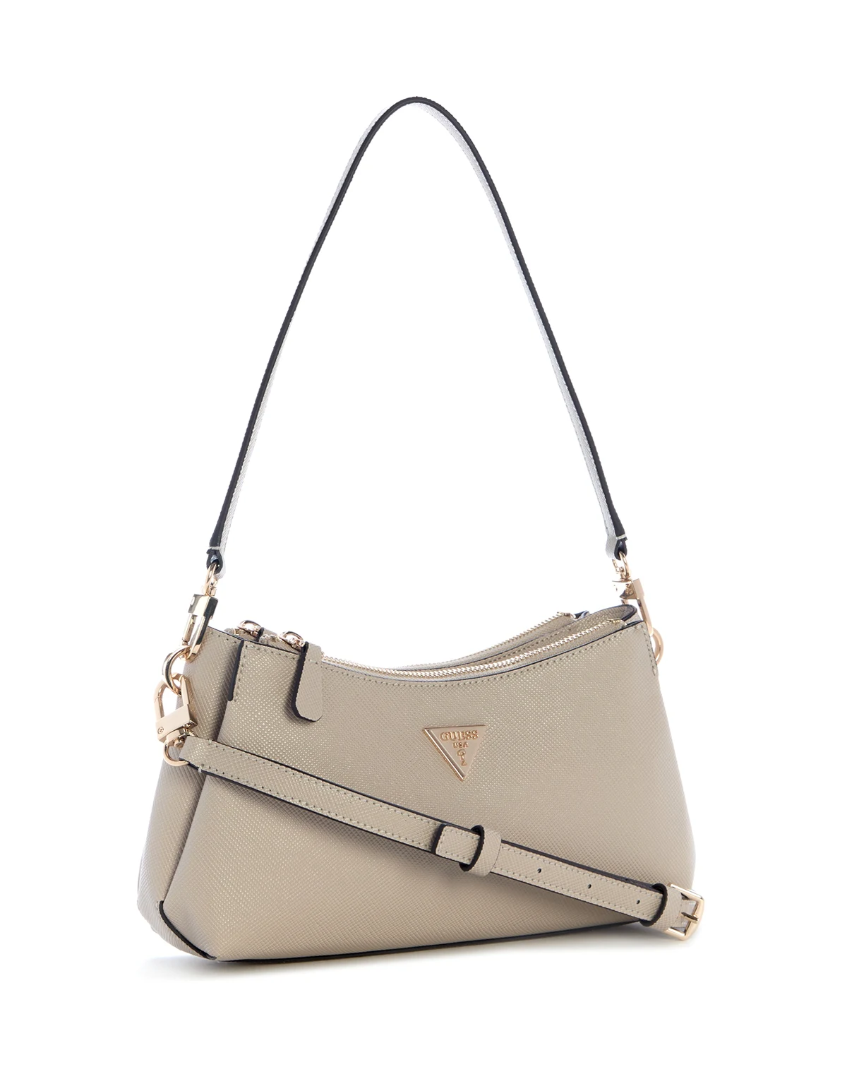 A classic wardrobe staple, this crossbody by GUESS features a functional triple compartment interior and is finished with a shiny gold-tone iconic logo plaque.