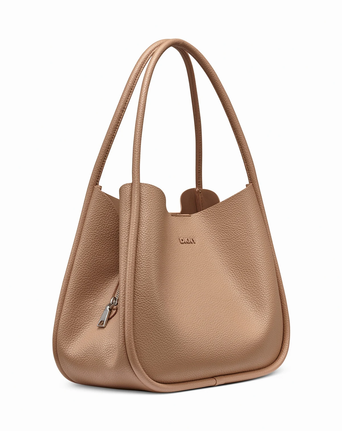 Large-sized bag; 12-3/5"W x 10-3/5"H x 5-9/10"D (width is measured across the bottom of handbag); 2.22 lb. approx. weight; Silhouette is based on 5'9" model