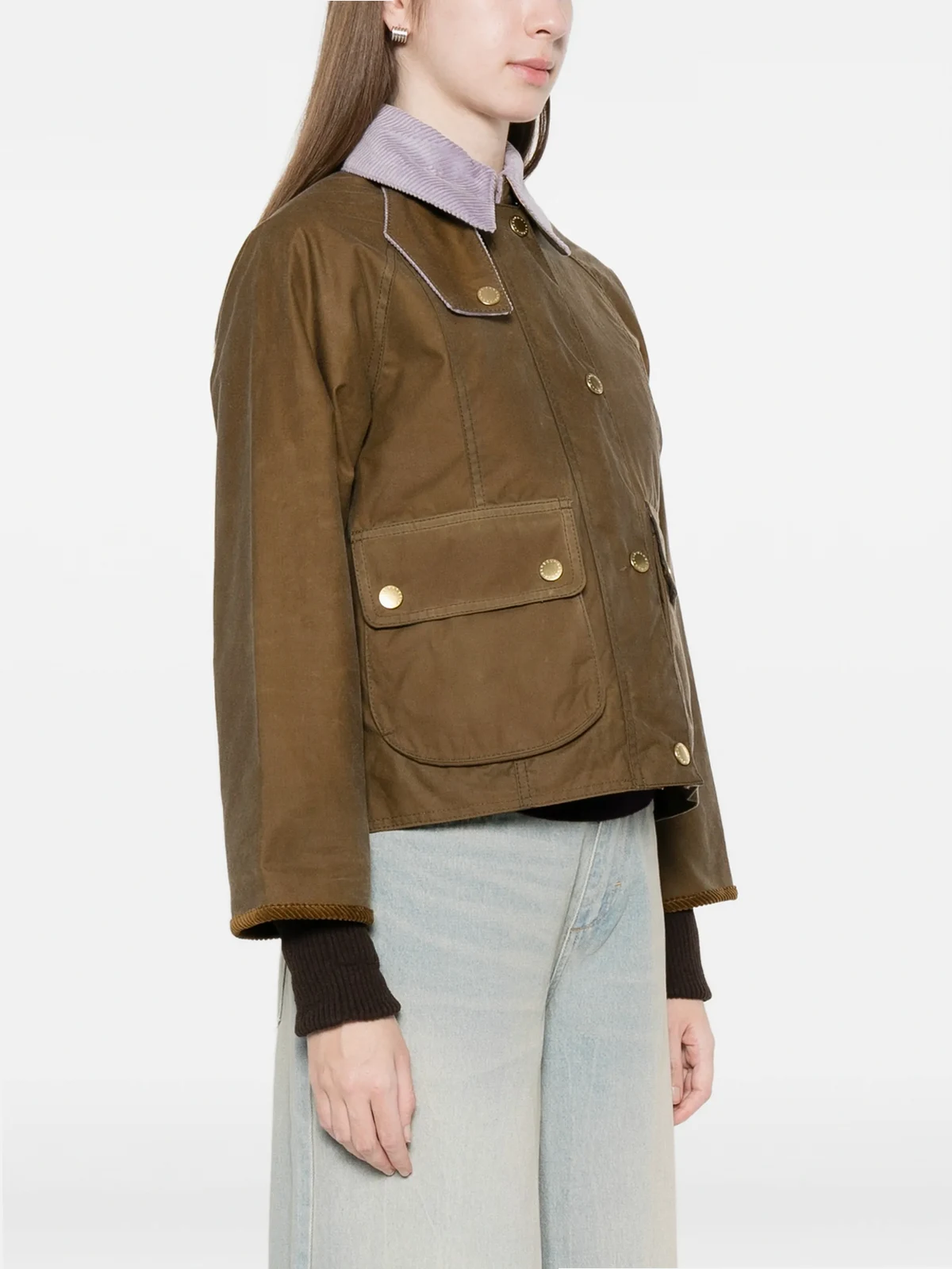Cropped Beadnell corduroy-collar waxed cotton jacket