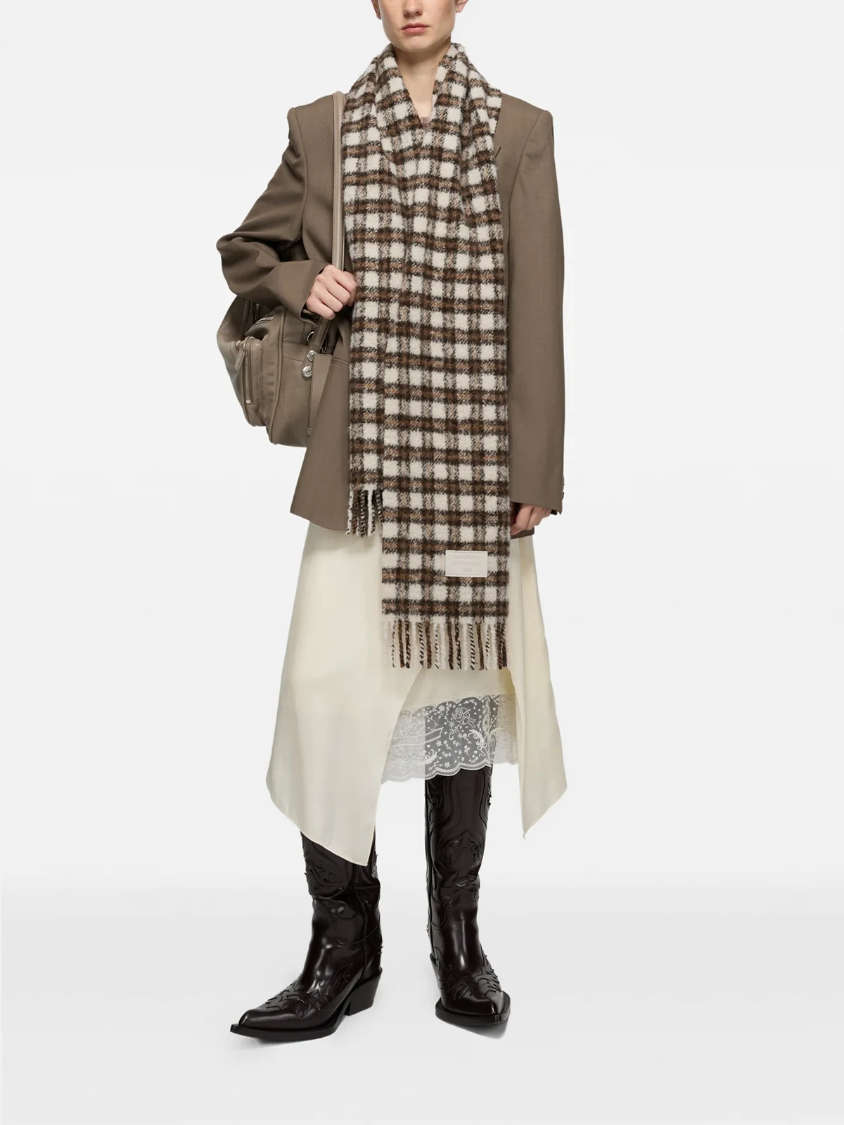 checked fringed scarf