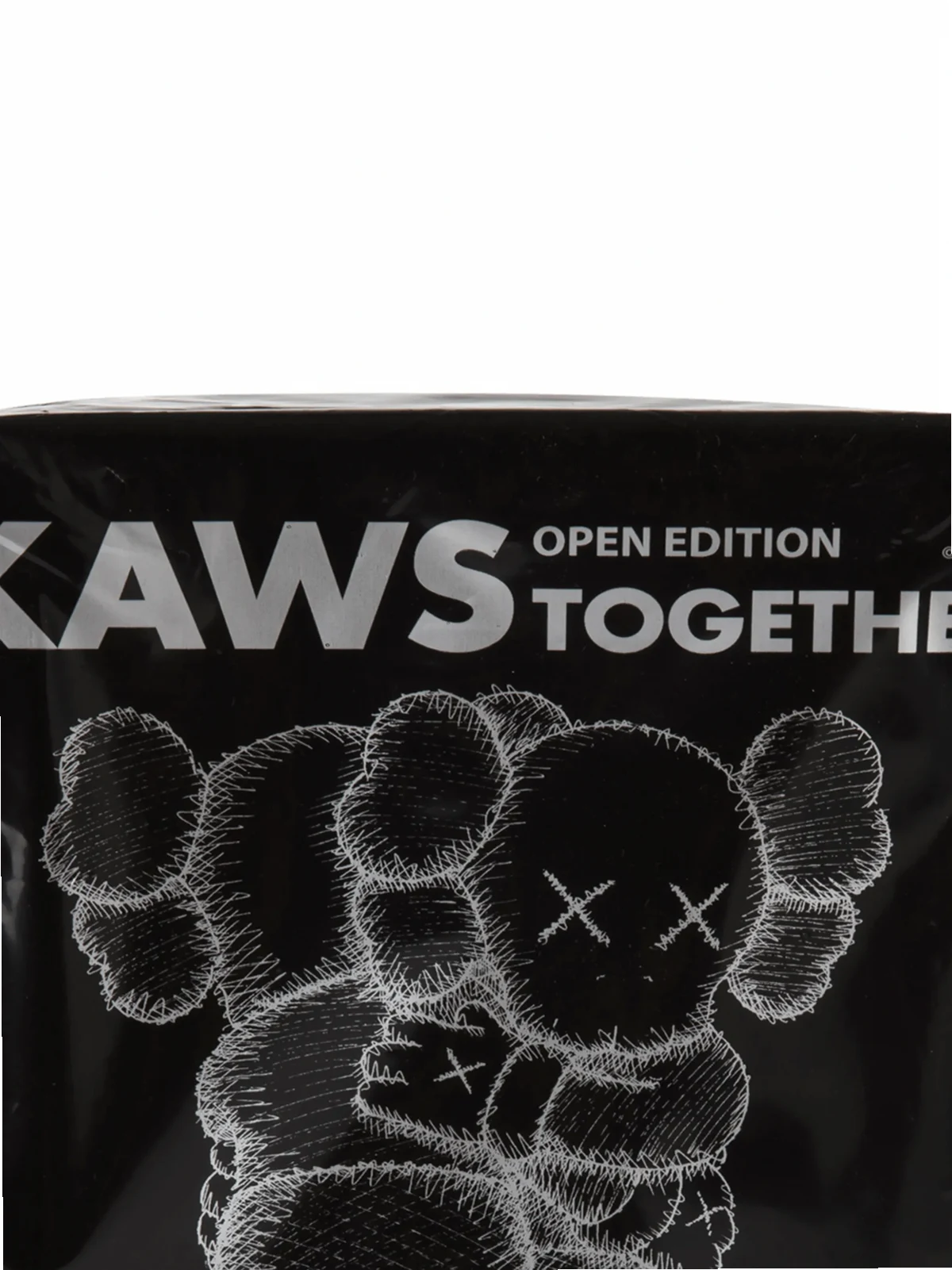 The KAWS Together figure features two interlocked Companions hugging and stands at 11.5 inches (29.2 cm) tall. The vinyl is stylised in a tonal grey design with KAWS' classic eye and hand motifs highlighted in black. The Together Figure in was released on June 12th, 2018 exclusively through KAWSONE. Prior to its release, large scale Together sculptures were on display at KAWS exhibitions at the More Gallery in Switzerland and the Modern Art Museum of Fort Worth in Texas during 2016.