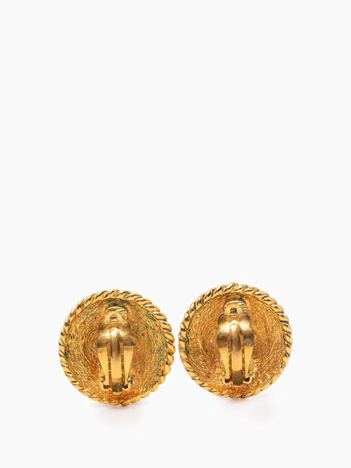These earrings feature a gold-plated metal bodies and a clip-on closures. Gold. This item has no inclusions. Condition: GOOD. This previously owned and used item is in good condition with minimal signs of use. This may include fading of material or plating and scratches. Due to the exclusivity of this item and its limited availability, processing and delivery might take longer than usual. Declared Damages: Exterior Back Feature(s) Moderate Discoloration. Closure Feature(s) Moderate Rust/Tarnish. Please refer to the photos on this product page for a detailed view of the item, including any damages declared.