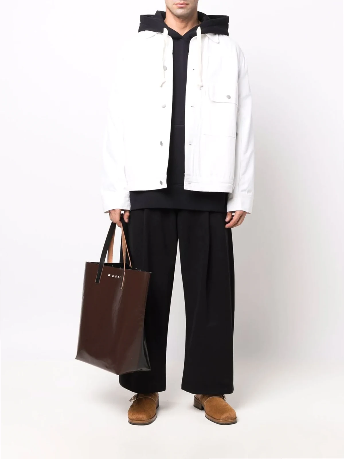 black cotton wide leg high waist front button and zip fastening belt loops two rear patch pockets