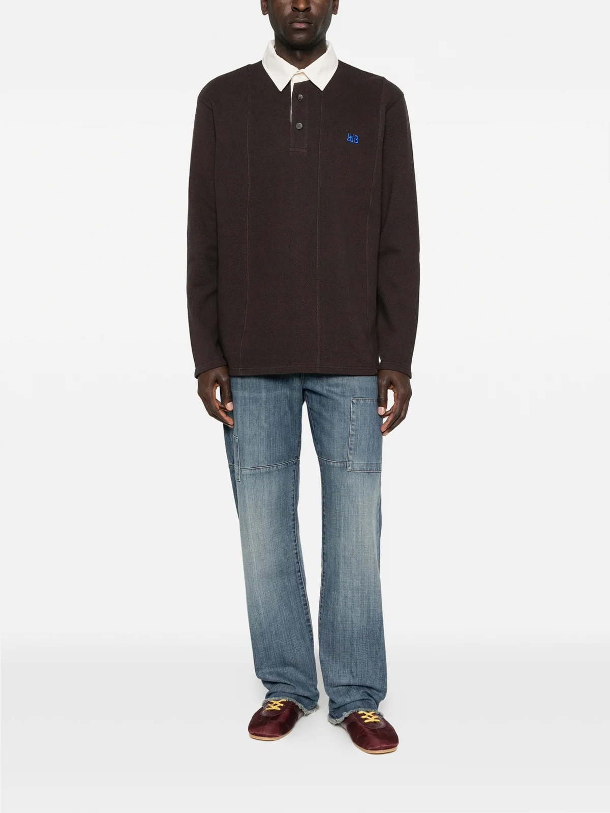 pique long-sleeve polo shirt