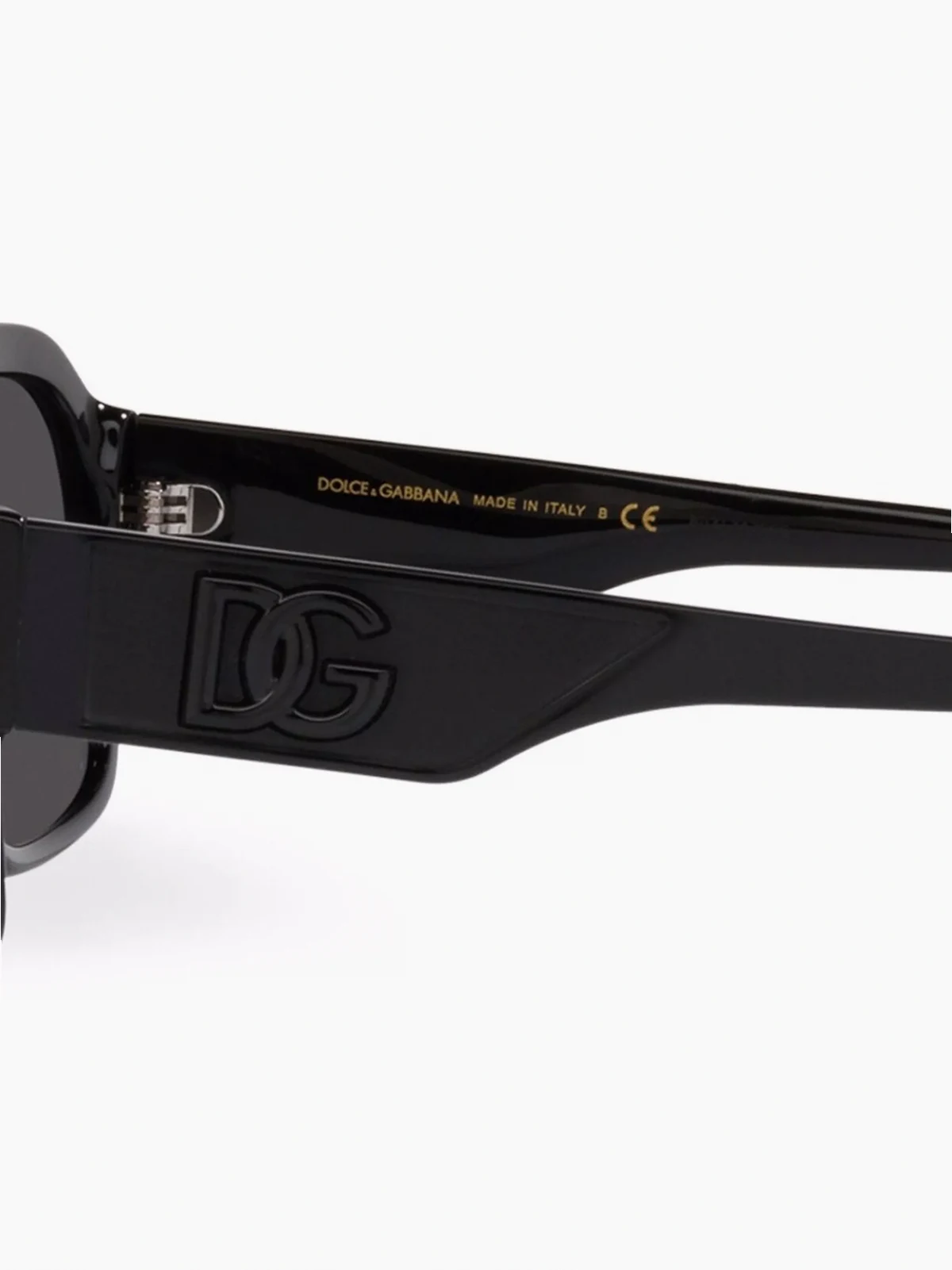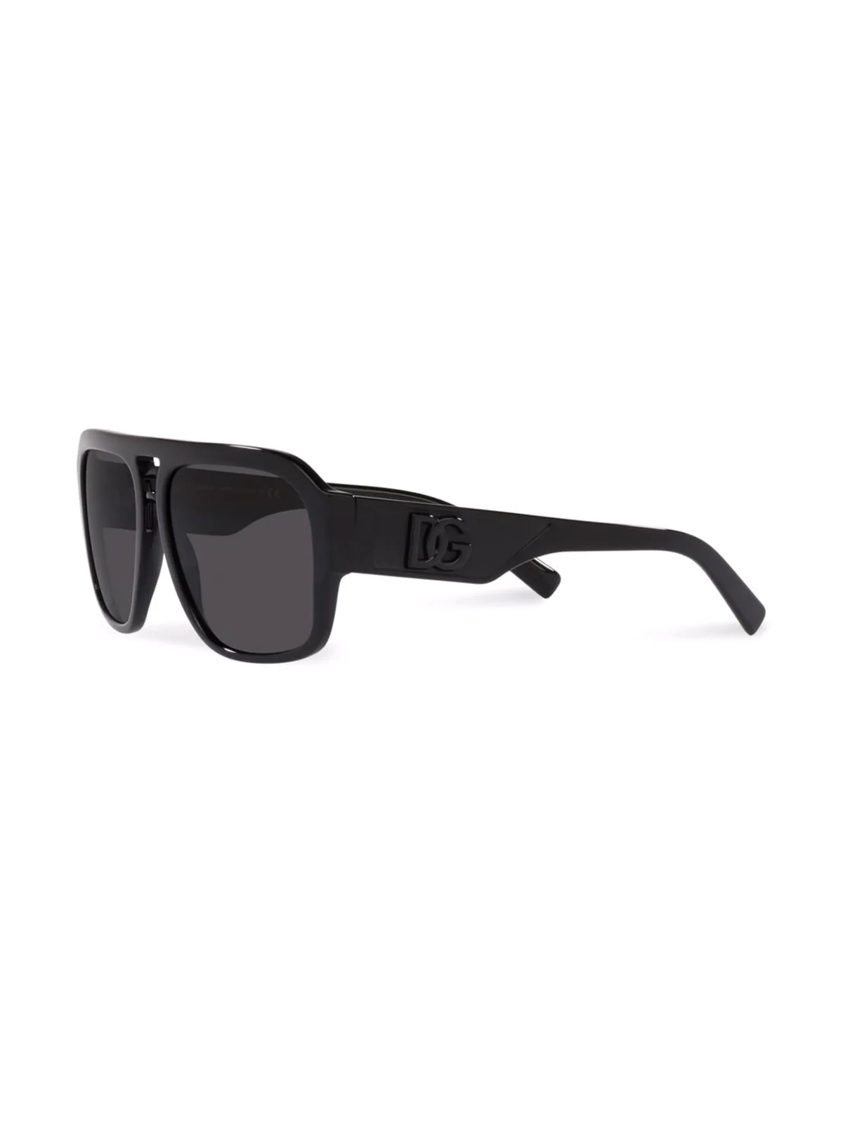 black pilot frame tinted lenses double nose bridge logo plaque at the arm straight arms curved tips These glasses come with a protective case.
