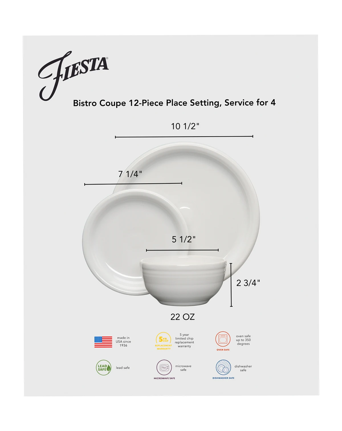 Aegean Bistro Coupe 12 Pc. Dinnerware Set, Service For 4