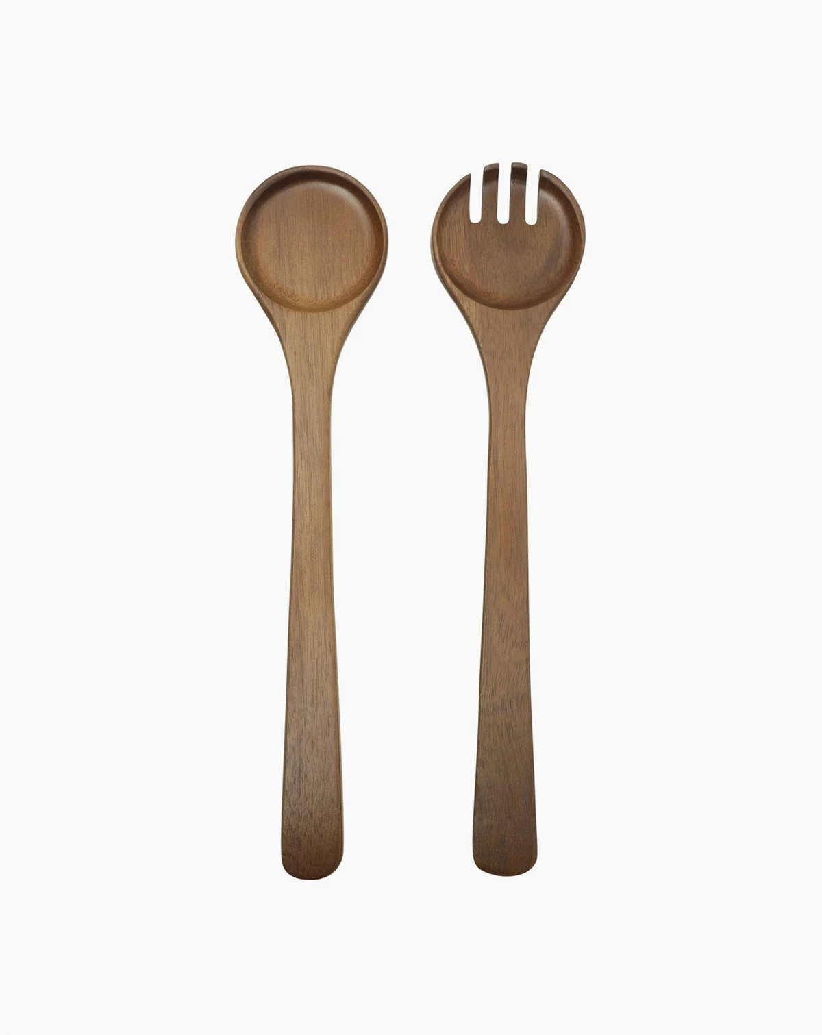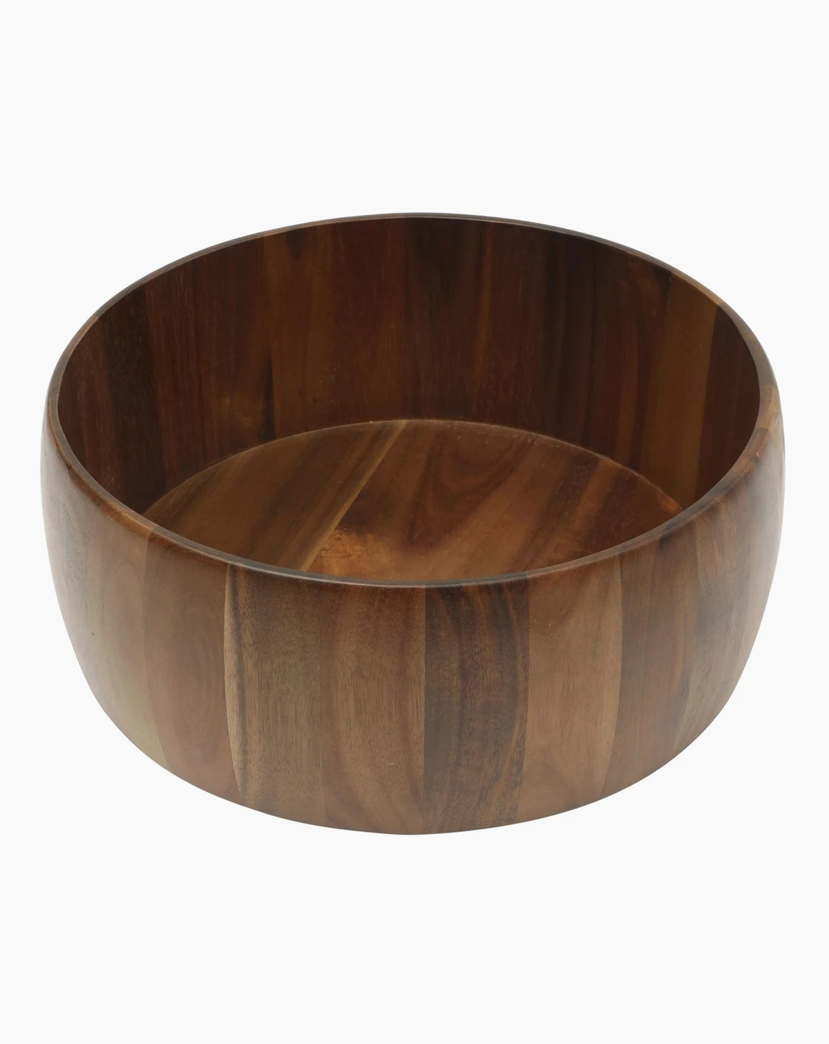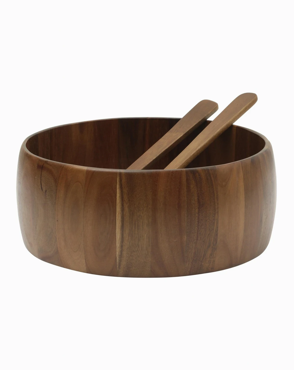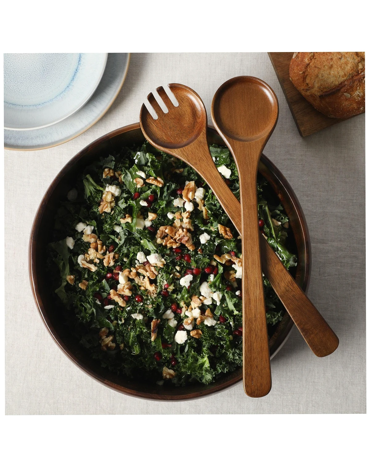 The Gibson Elite Laurelton Acacia Wood salad set features a 13"D x 4.9"H salad bowl and 2 matching servers. The beautiful Acacia Wood bowl will complement your lovely salads and add to your dining pleasure. The natural beauty of the wood will enhance your dining experience and captivate your guests. Add the beauty and elegance of wood to your next dining experience with the natural trends Acacia Wood salad bowl set. This salad serving set is a perfect way to show off your eco-conscious side at your next gathering, and to do so in style. These gorgeous Acacia Wood pieces are not only perfectly functional for everyday use, but they are also a stunning example of your artistic side. Acacia wood is brown in color with attractive natural grain, giving a warm rich touch to any home.