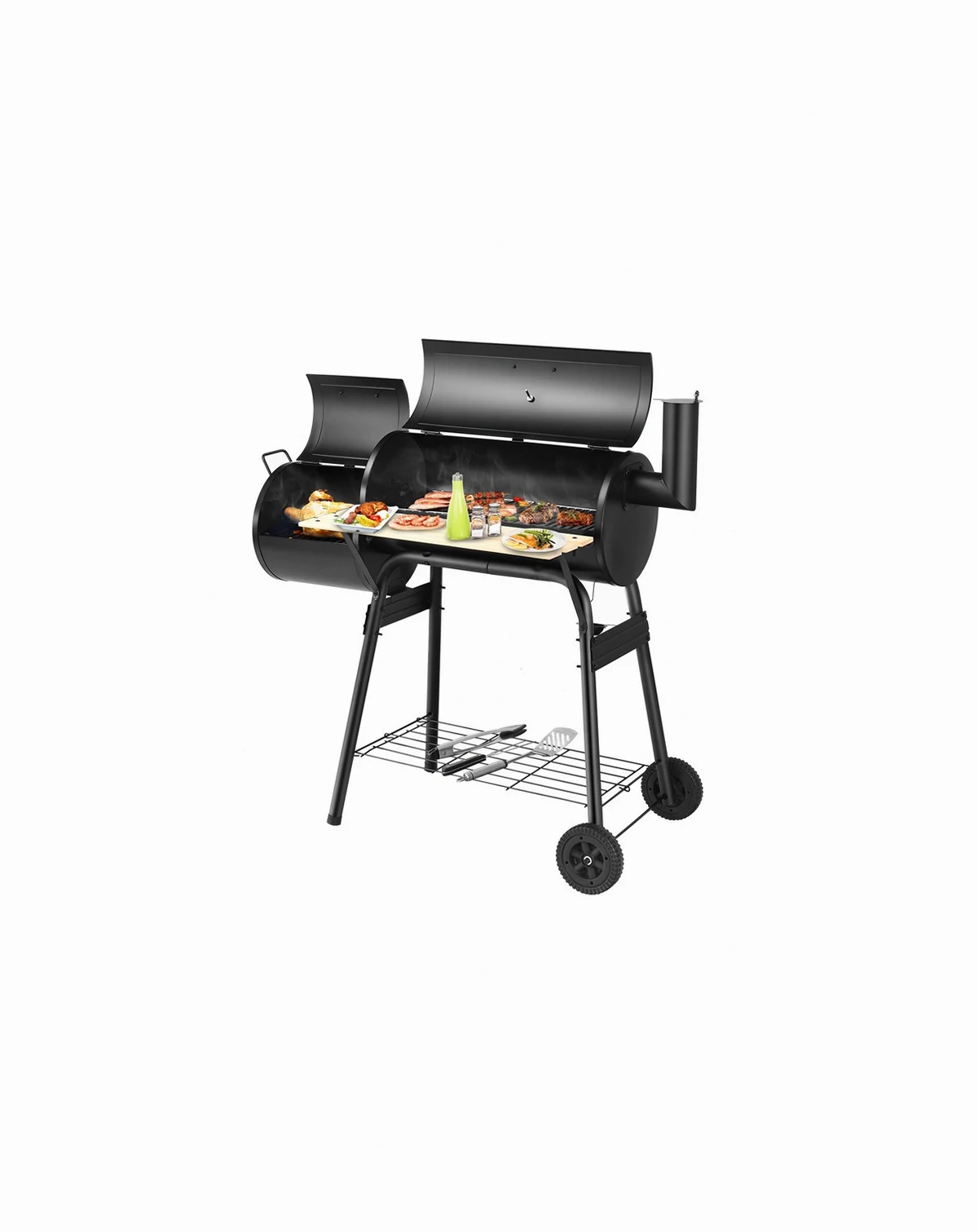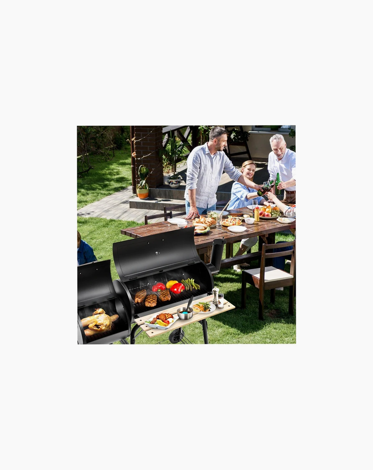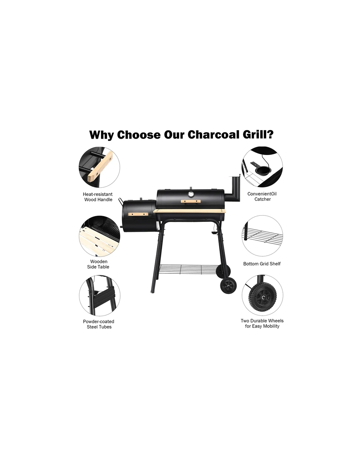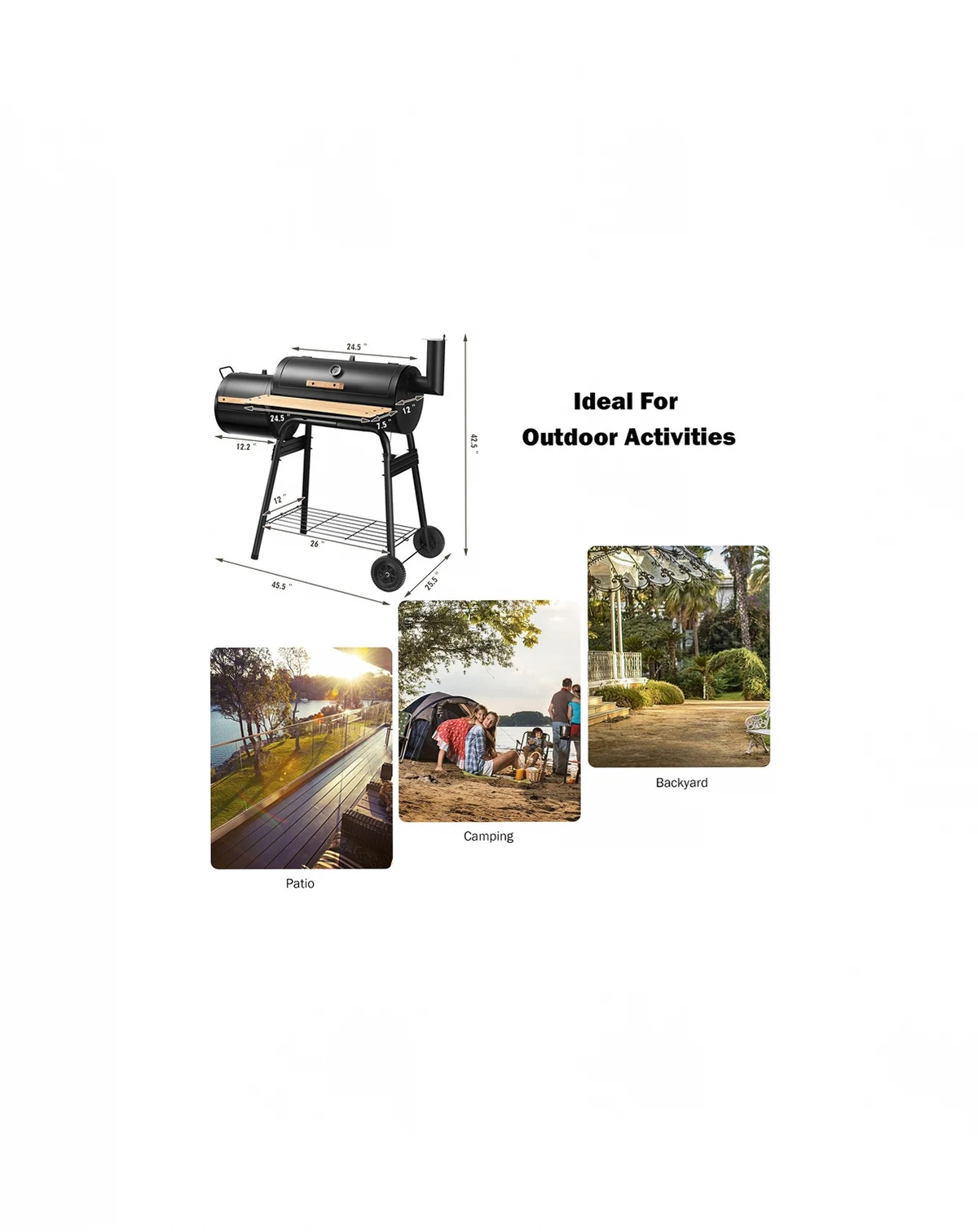 Enjoy outdoor cooking with this durable steel grill. Its heavy-duty construction and anti-rust design ensure longevity. Features an attached firebox to reduce smoking, a convenient side shelf for food and tools, and an installation guide for easy setup.