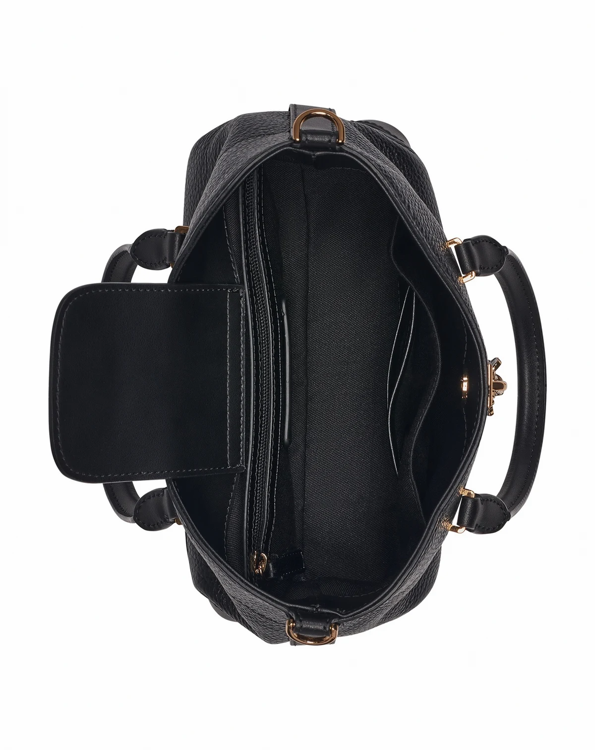 Small-sized bag; 11"W x 7"H x 4"D (width is measured across the bottom of handbag); 1 lb. approx. weight