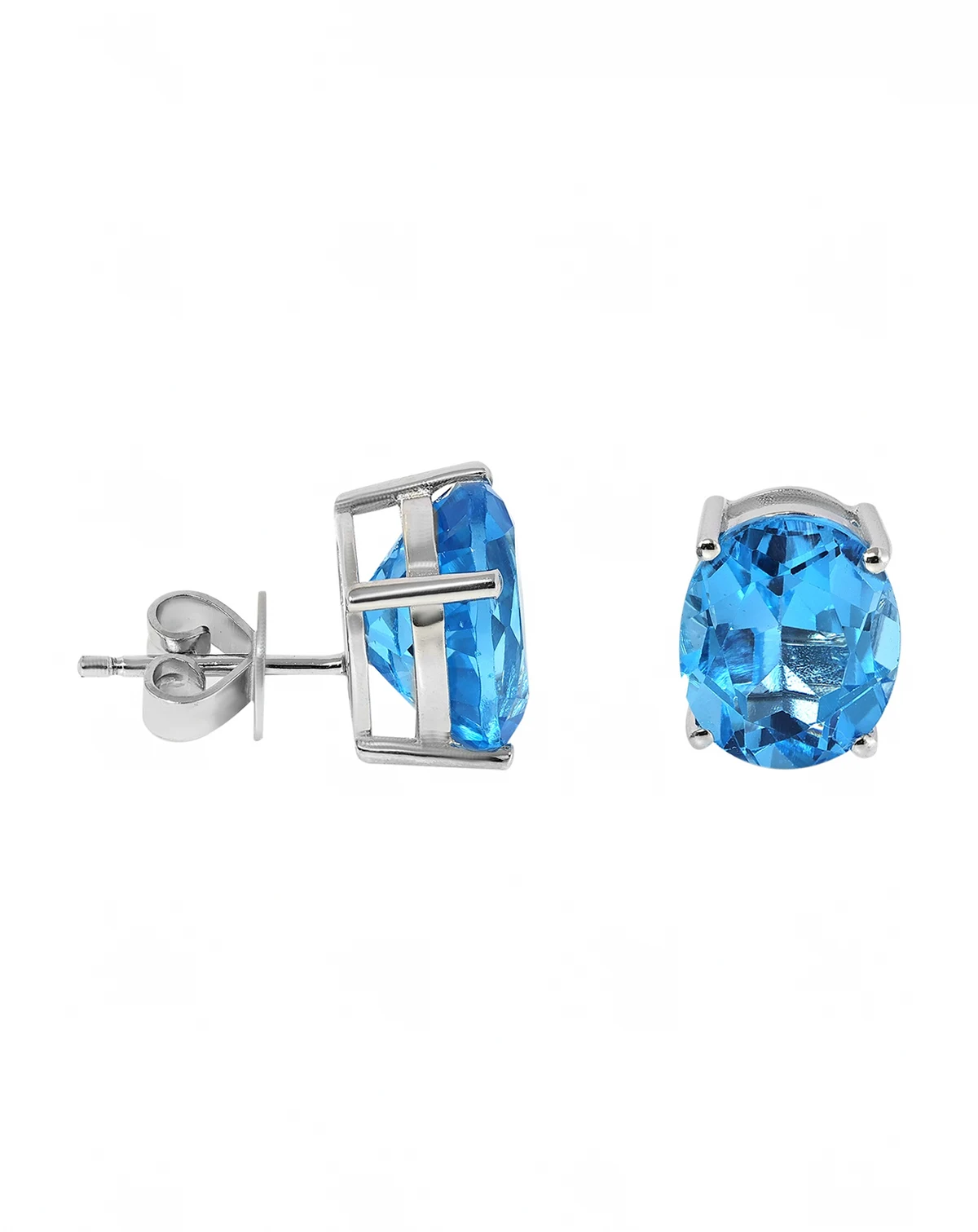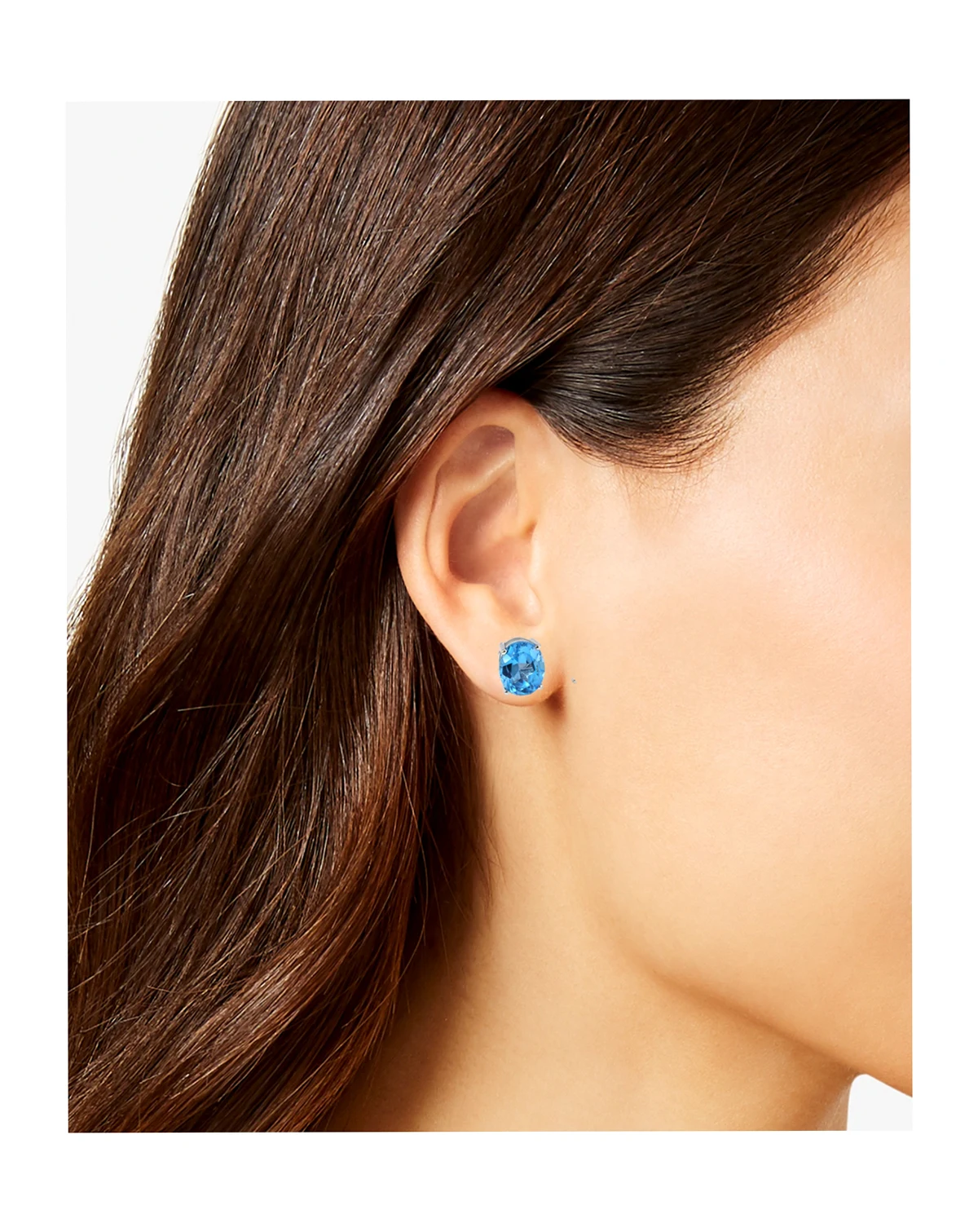 Showcasing sizable oval blue topaz stones, these Macy's earrings make a vibrant stud statement. Push back closures and a sterling silver setting ensure a comfortable, secure fit with brilliant color.