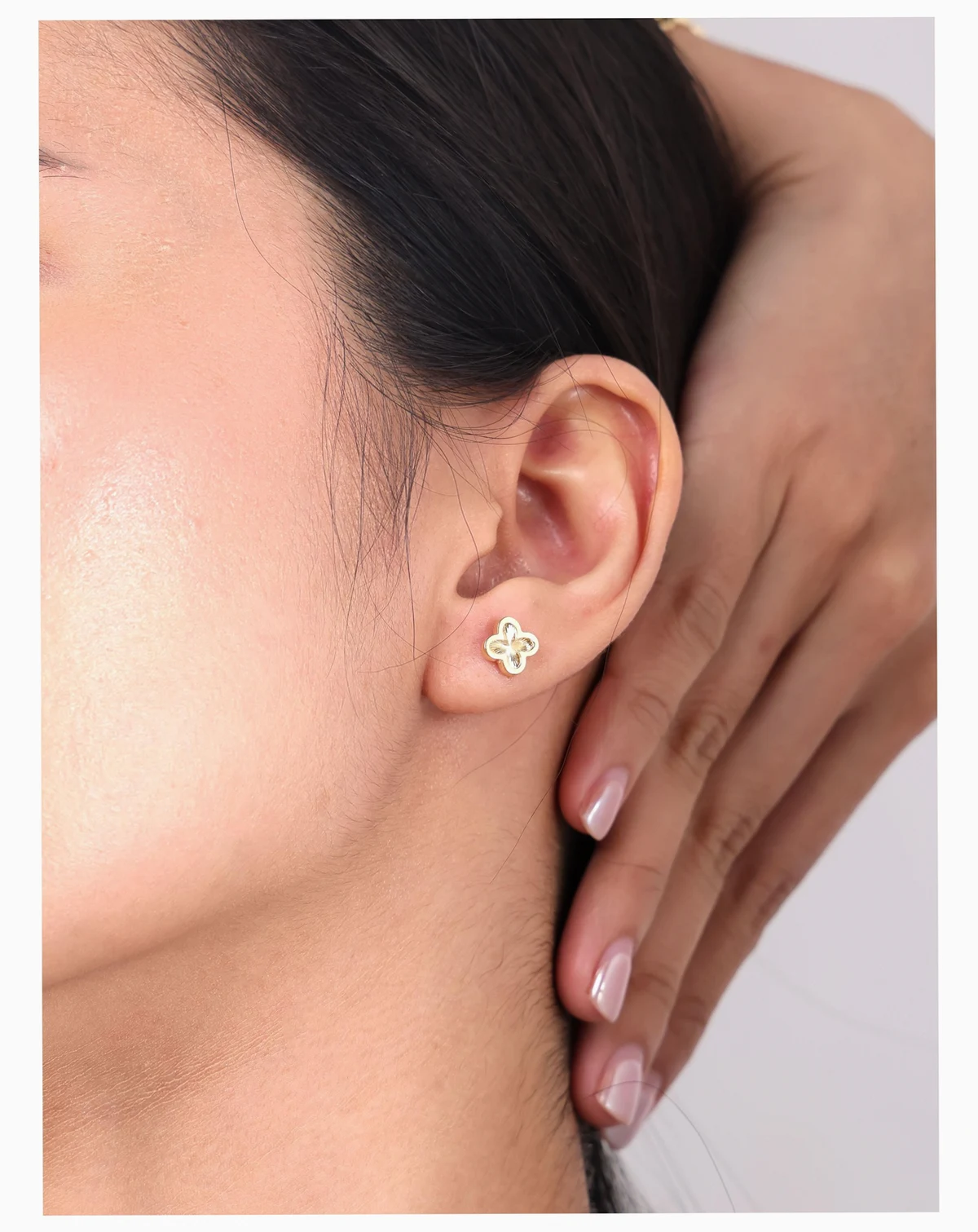 DEVATA clover stud earrings crafted in solid 14K yellow gold.