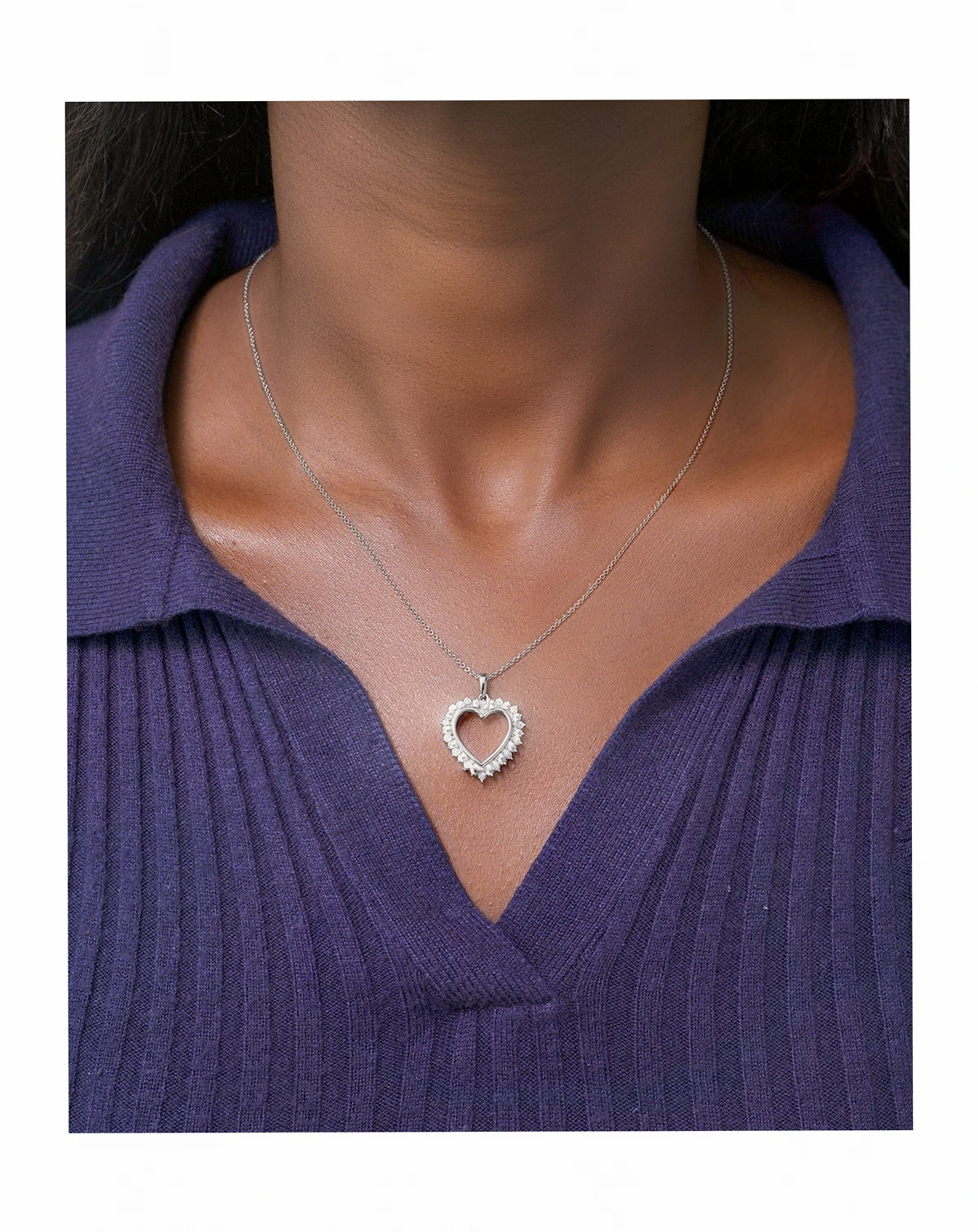 A look that you'll forever love, this sterling silver cable chain leads to a dazzling diamond heart pendant.