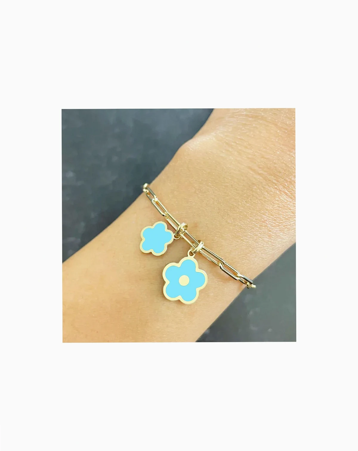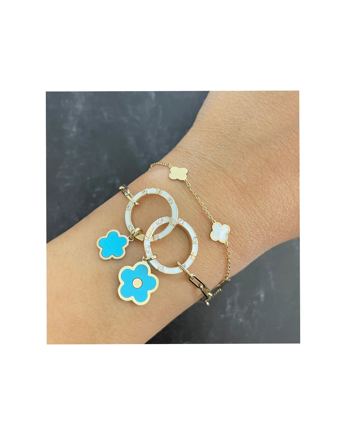 The Lovery Turquoise Flower Charm is in 14k Yellow Gold. This piece measures 11 millimeters - 0.43 inch and is identical on both sides.