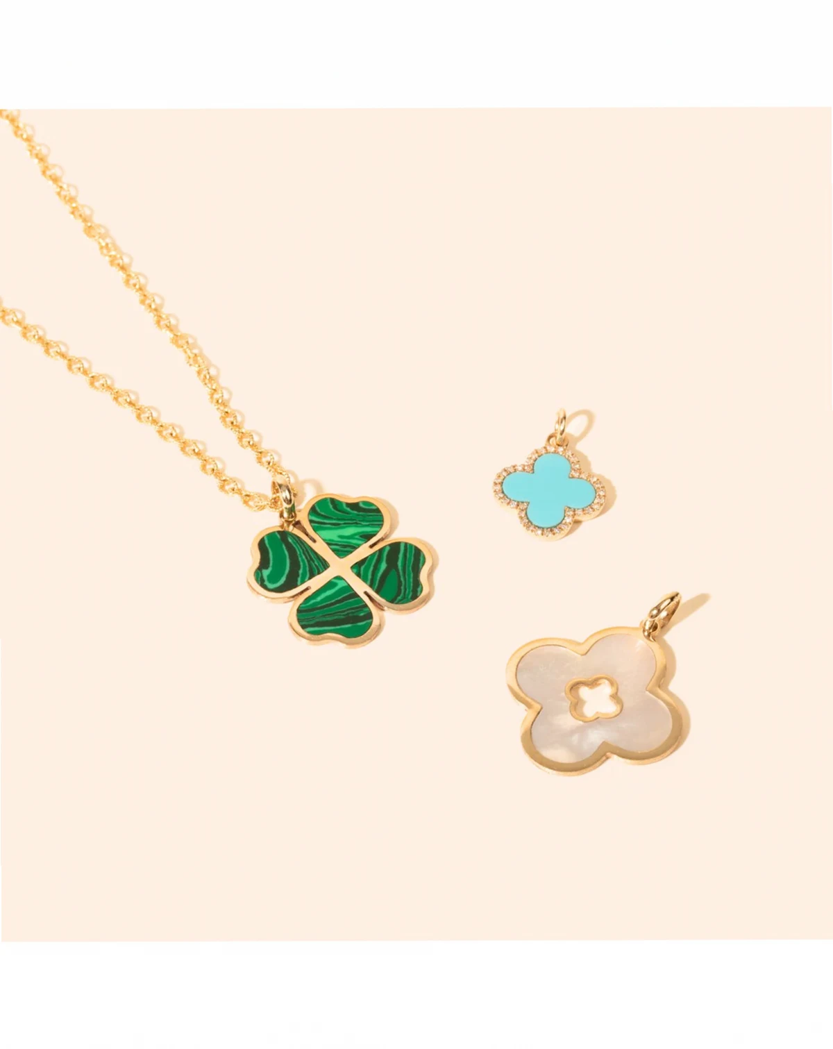 4. Malachite Lucky Clover Charm 14K Gold 18 millimeters