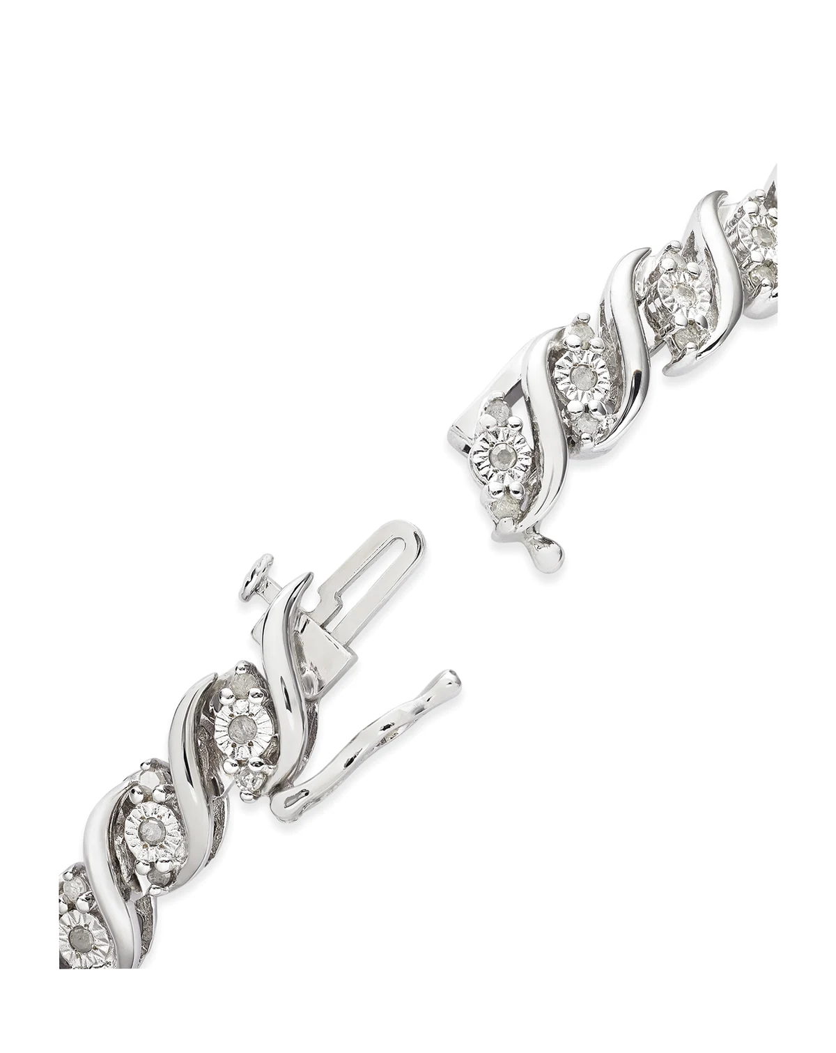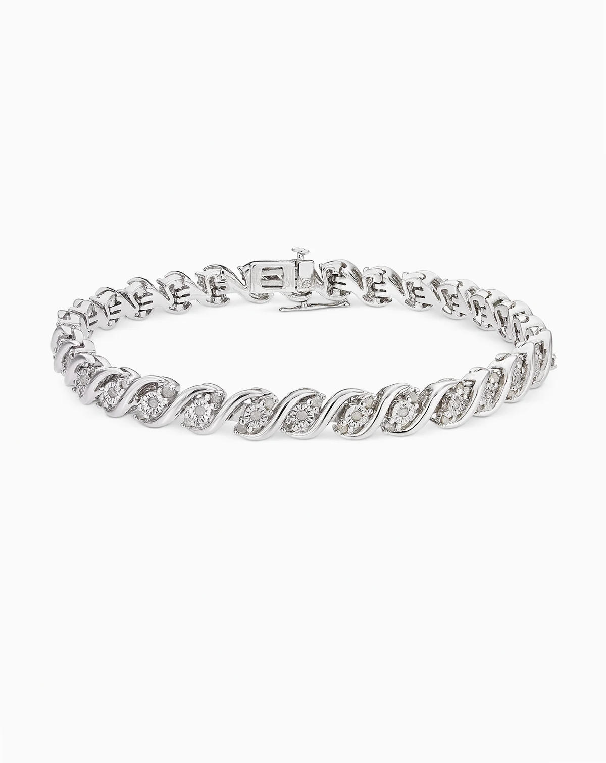 Stunning sparkle starts at the wrist with this eye-catching twist bracelet accented with beautiful round-cut diamonds and set in sterling silver. Push-lock clasp with safety close. Approximate length: 7-1/4".
