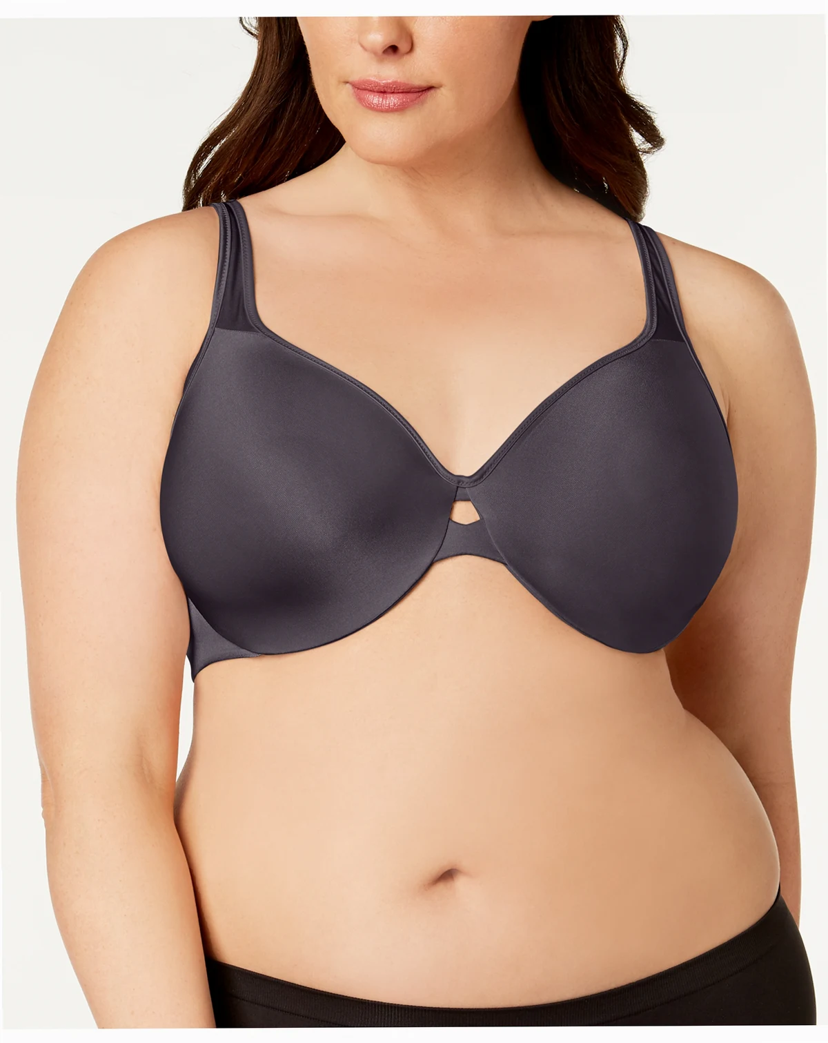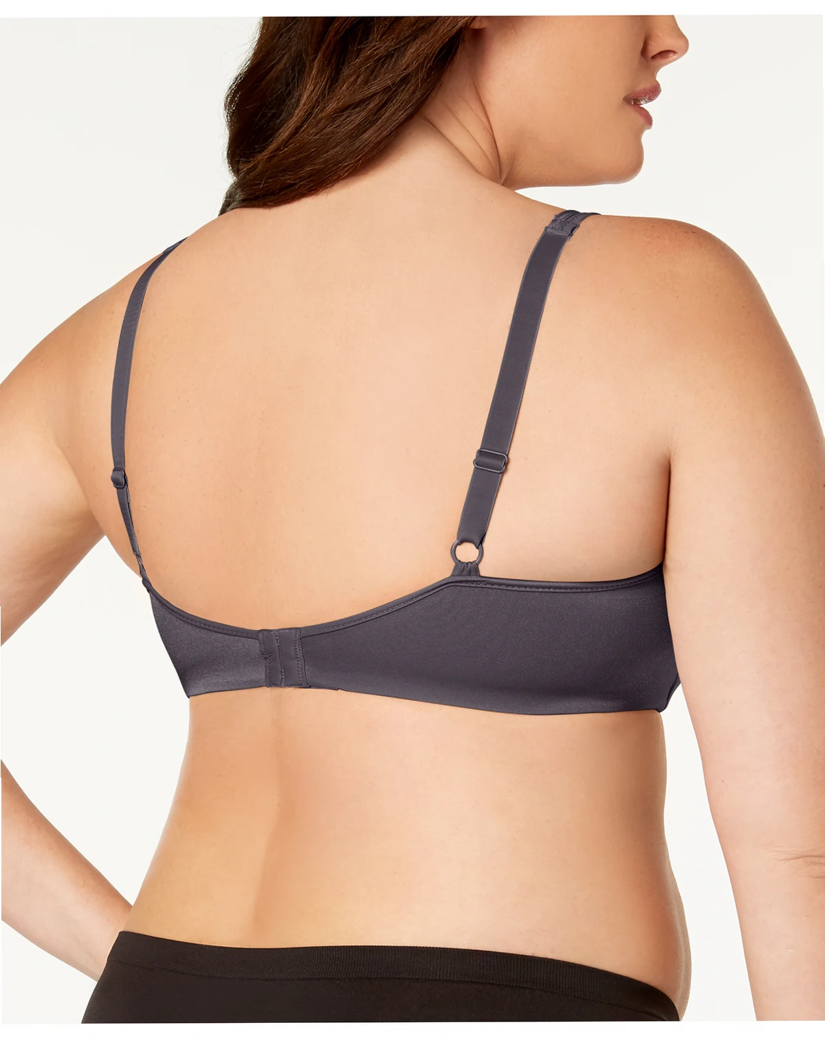 The Lilyette by Bali Plunge Into Comfort Minimizer bra has a sexy plunge design providing a V-shape that lays flat while providing a comfortable and secure fit.