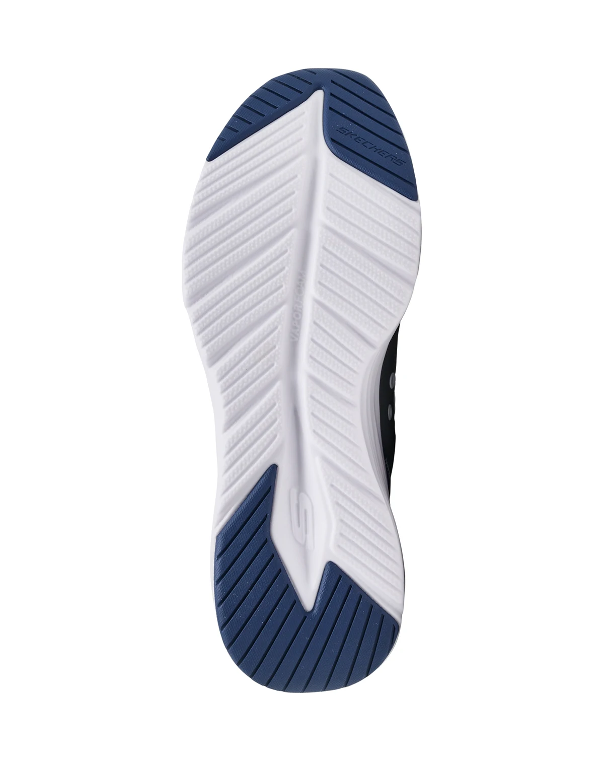 Quilted fabric and synthetic overlay upper with Skechers No Tie Fit laces never come untied; Flexible traction outsole with 1 1/3-inch heel height