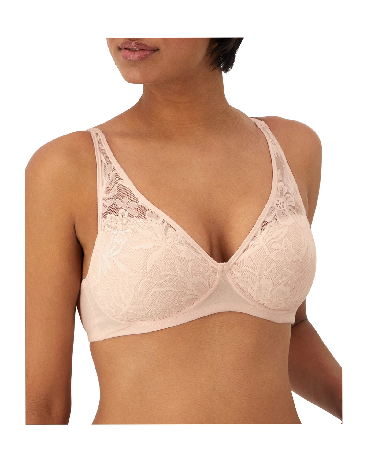 Feel beautiful without sacrificing support with the Bali Breathe T-shirt bra. This full-coverage bra has a breathable liner designed to help keep you cool and dry. Thin foam cups offer targeted support and softness, while the built-up back and sides provide all-around smoothing. Style #DF7594