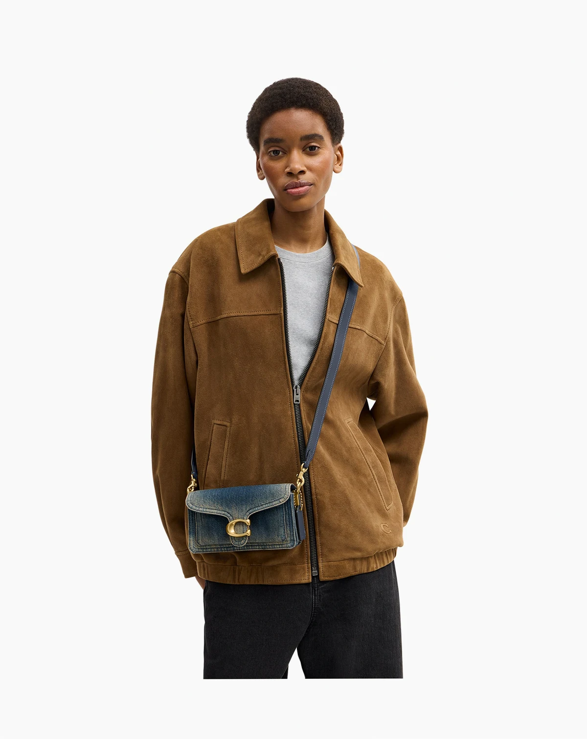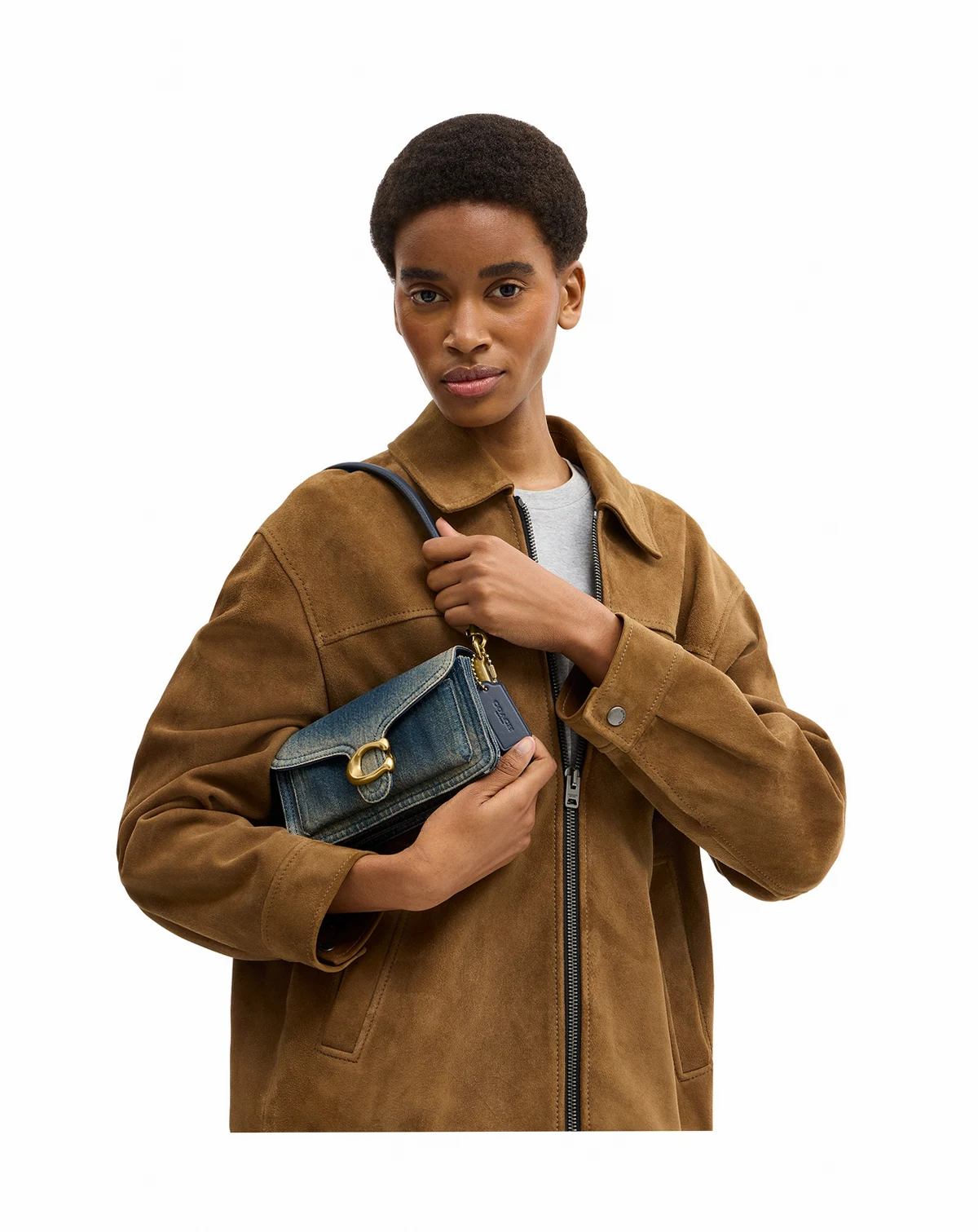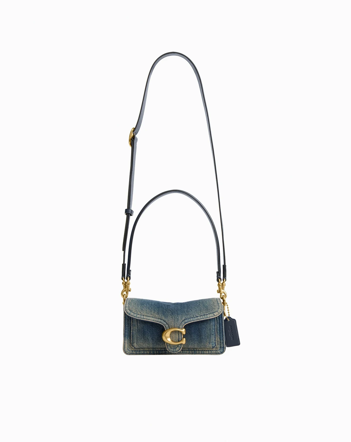 Refined contrast defines this COACH Tabby shoulder bag, crafted from a mix of denim and leather. Inside zip and multifunction pockets keep essentials organized, while a detachable handle and strap offer versatile carrying options.