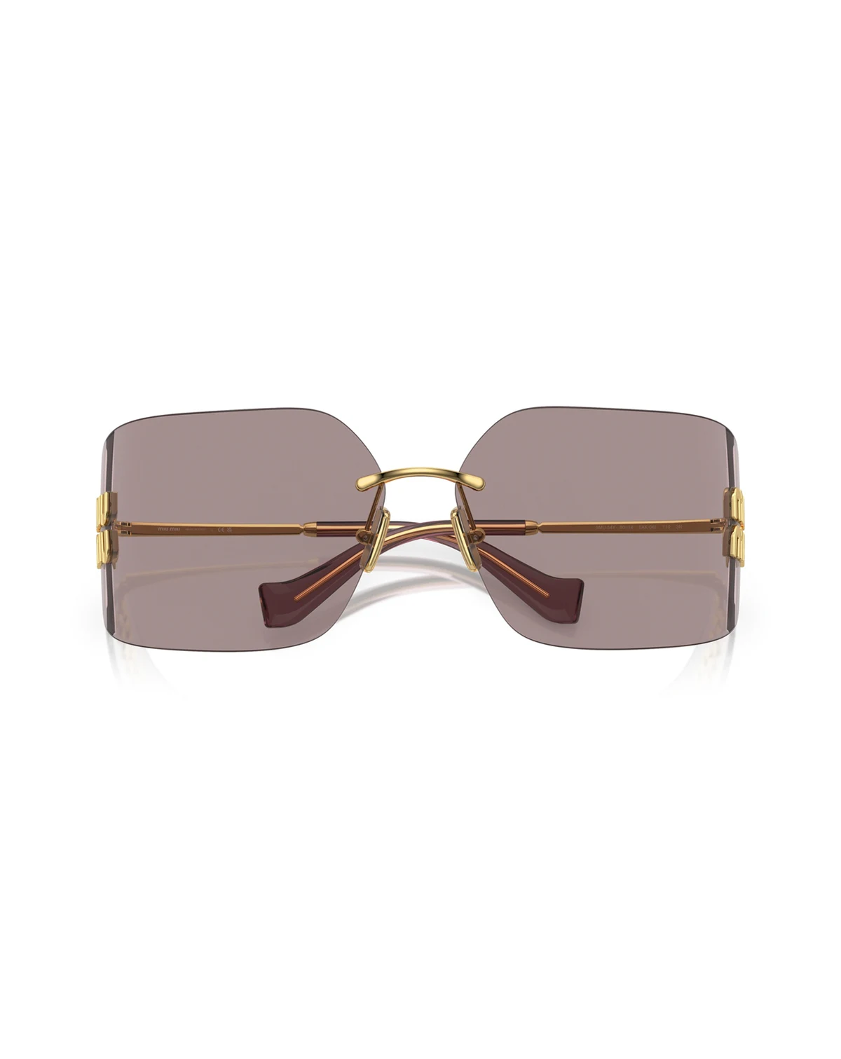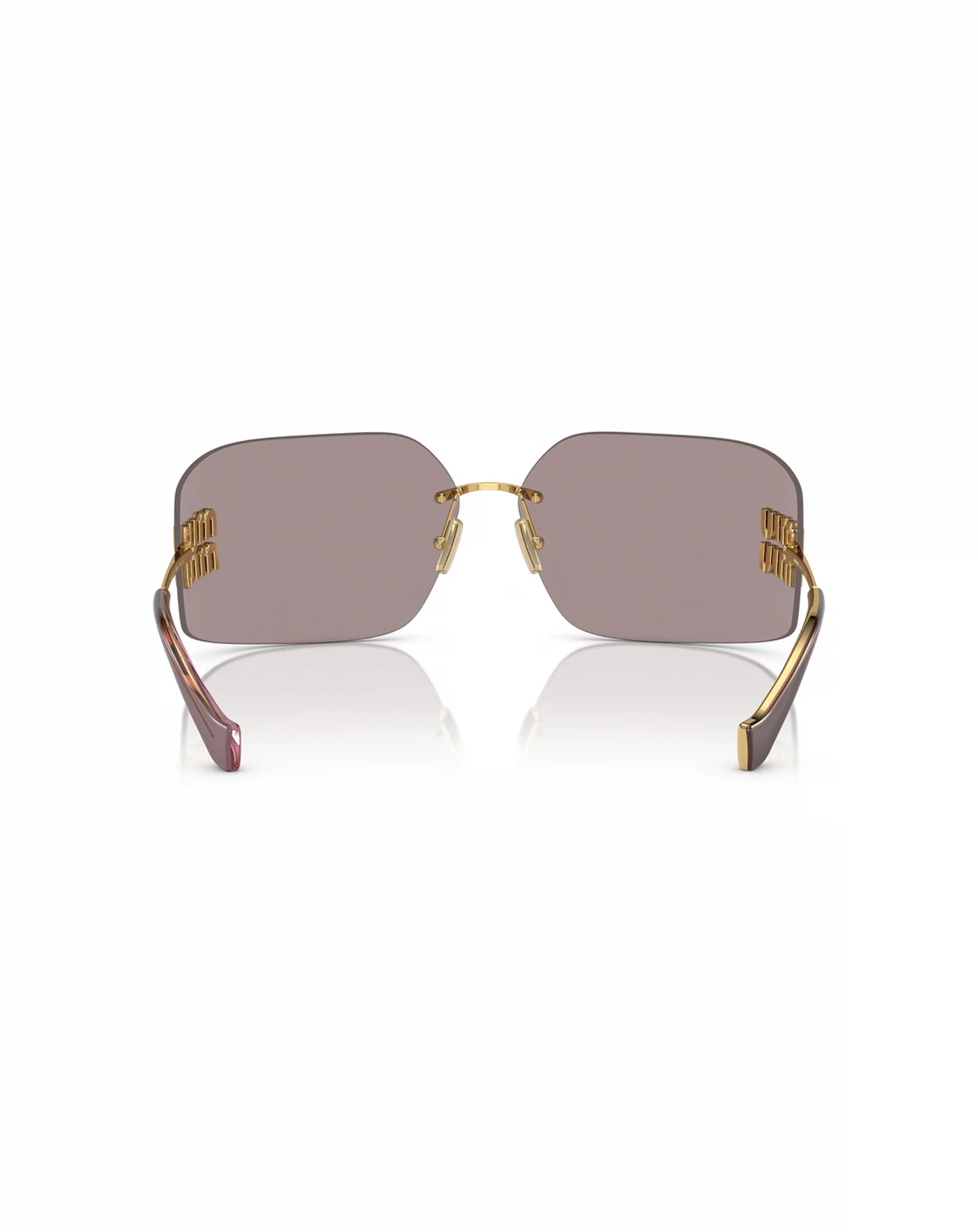The unique front and standout logos on the lenses make for a must-have accessory this season. Rimless wraparound shape with bold logo placement on the lenses and matching metal temples and bridge. Acetate temple tips match the lens colors offering an enriching stylish feature as well as added comfort.