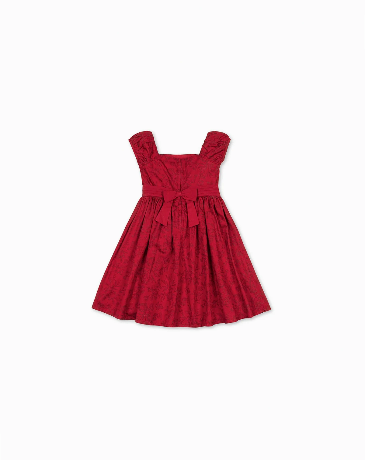 Our elegant special occasion dress in soft organic cotton sateen has all the incredible details that make it perfect for everything from dinner with the family to twirling on a dance floor. Features feminine puff sleeves, a waist sash with bow, and zipper closure at the center back. Fully lined in organic cotton.
