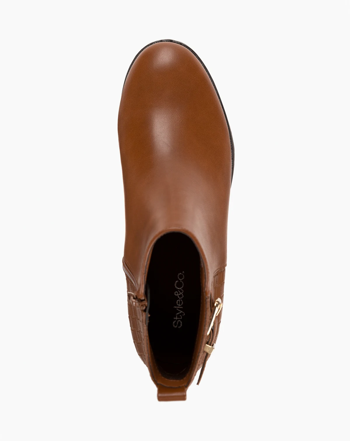 Because every step you take should be filled with flair and comfort, this pair of boots with a buckle detail from Style & Co is for you. The pull-on tab, memory foam, cushioned insole, and flexible sole add to the ease you feel.