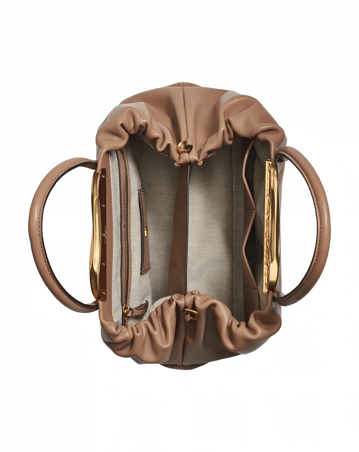 Introducing the Donna Karan New York Poplin Satchel with a new open silhouette and crossbody strap, it offers the perfect function. With a variety of colors to choose from, this sleek and stylish design is the perfect accessory.