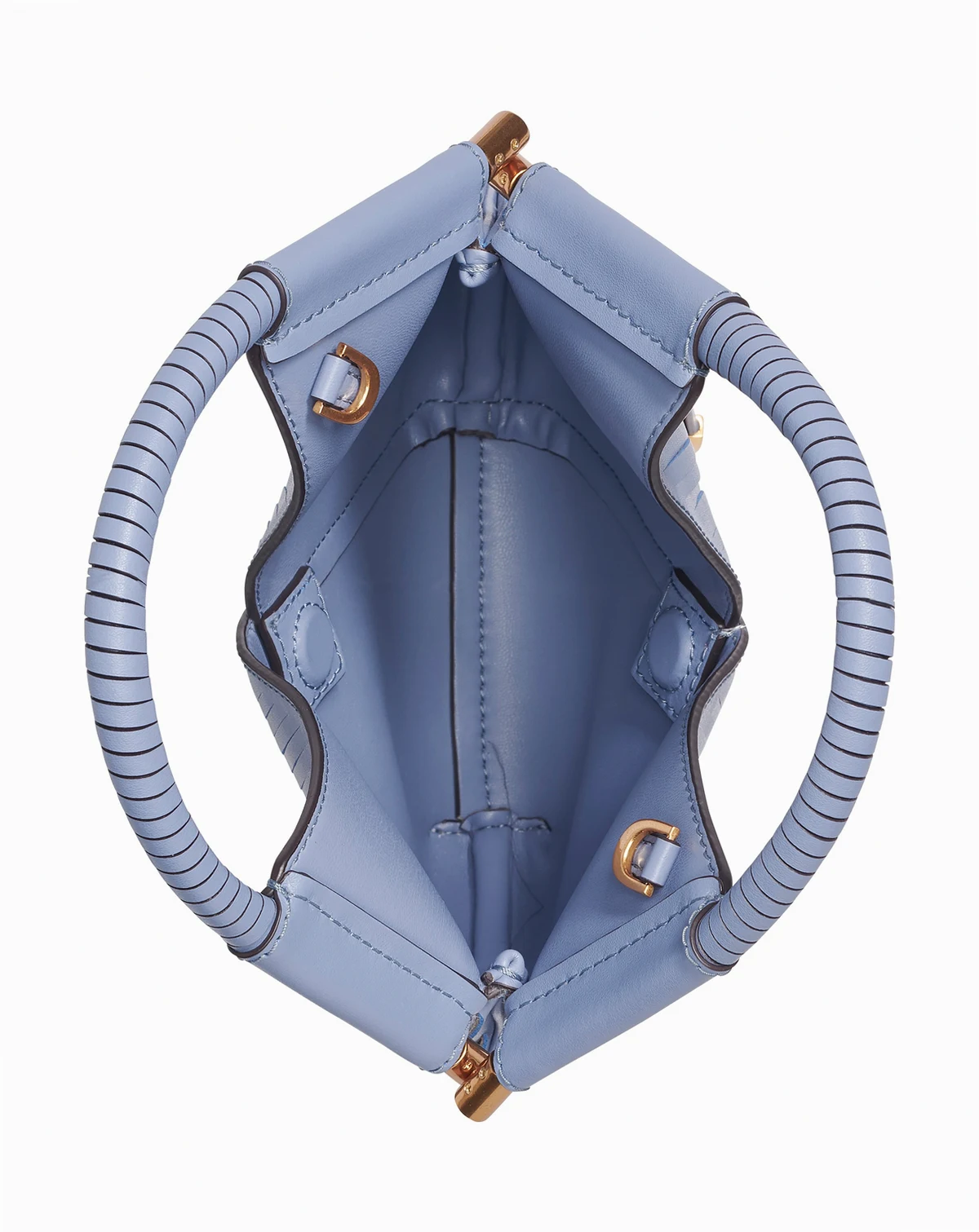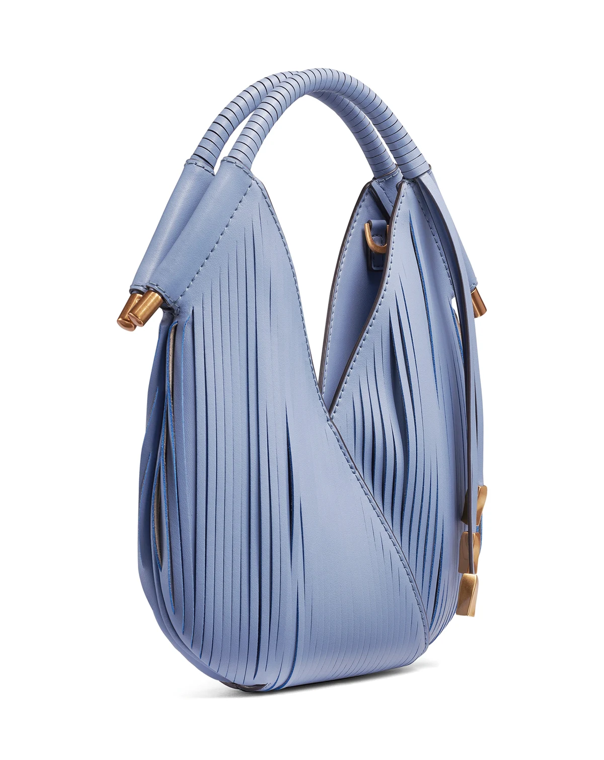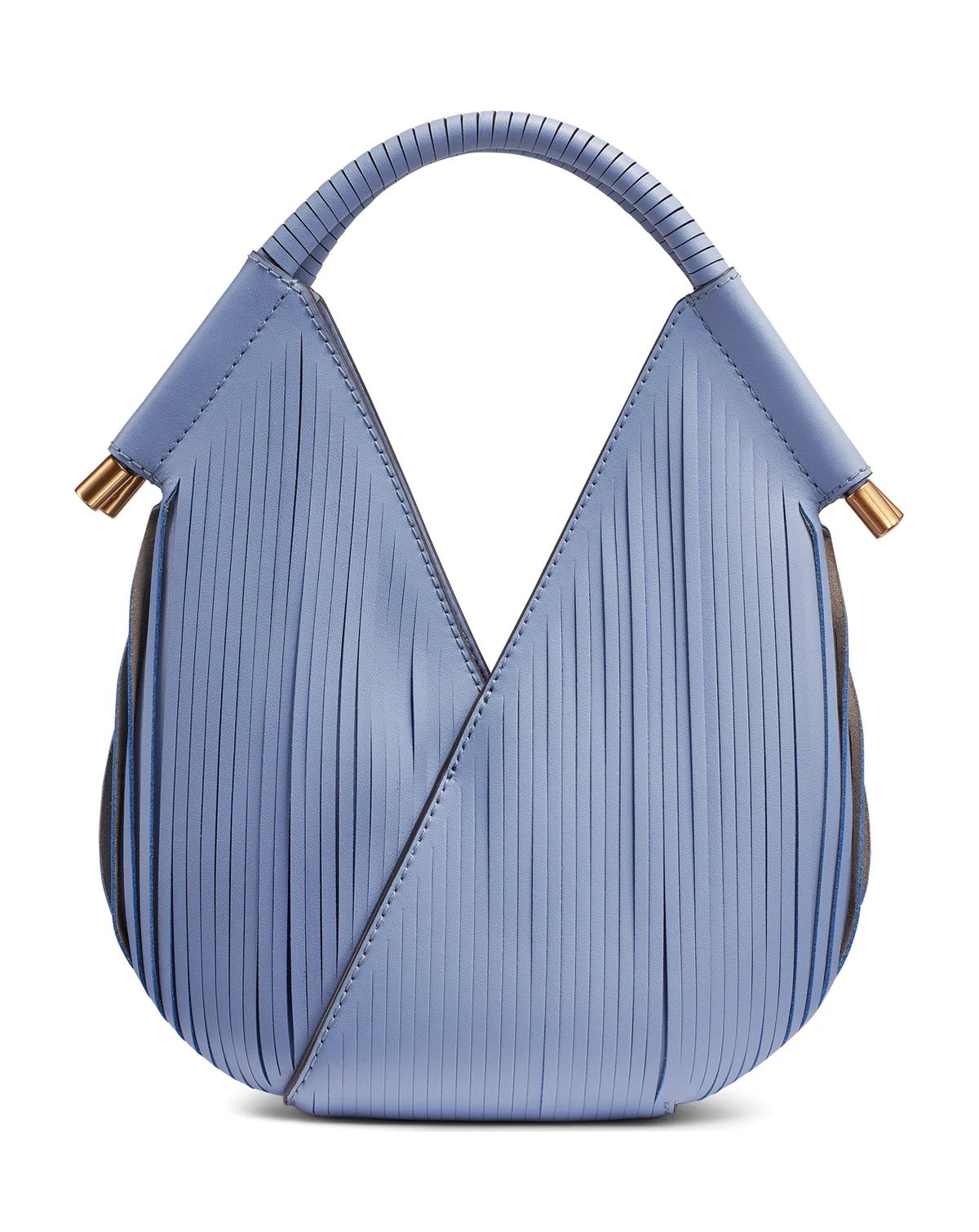 Small-sized bag; 8"W x 9-1/2"H x 1"D (width is measured across the bottom of handbag); 0.6 lb. approx. weight; Silhouette is based on 5'9" model