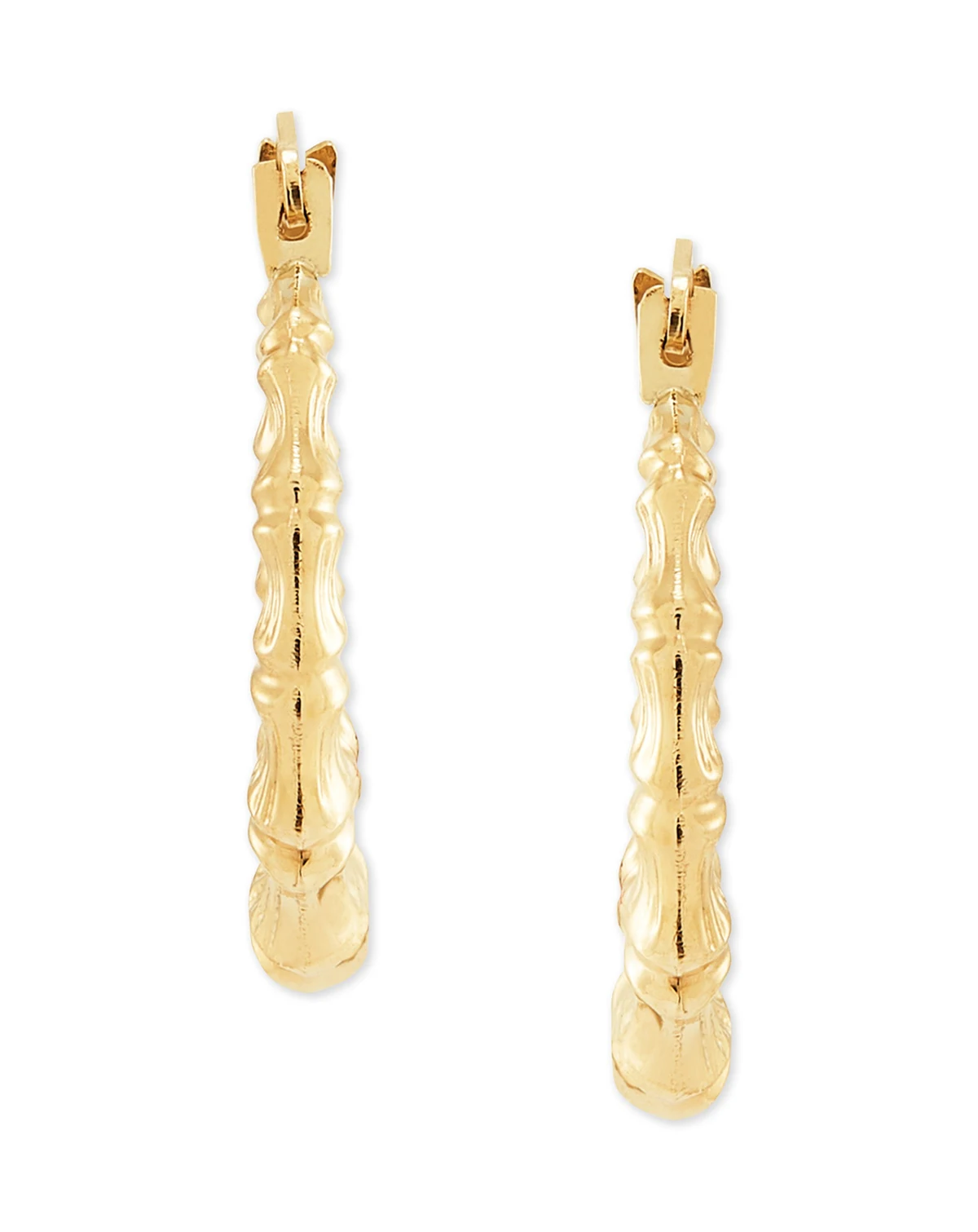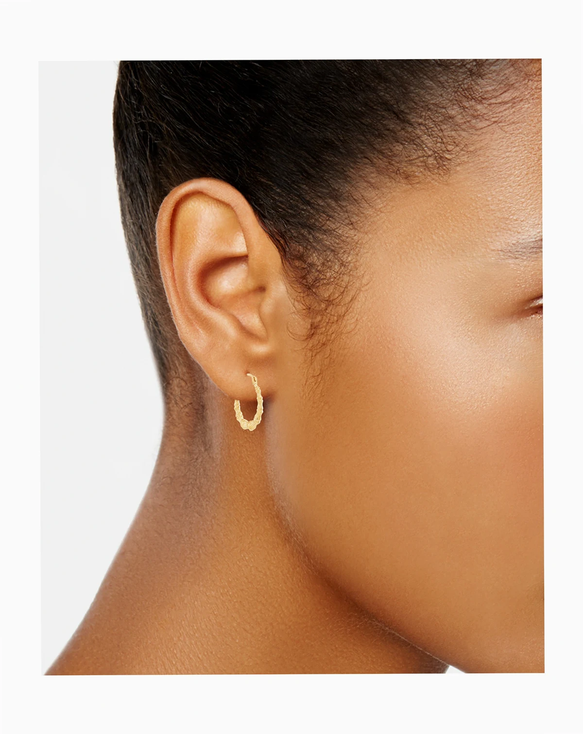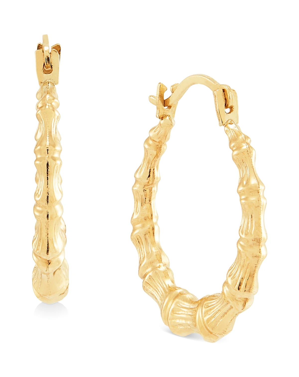 A bamboo-look design adds a sophisticated element to these small hoop earrings.