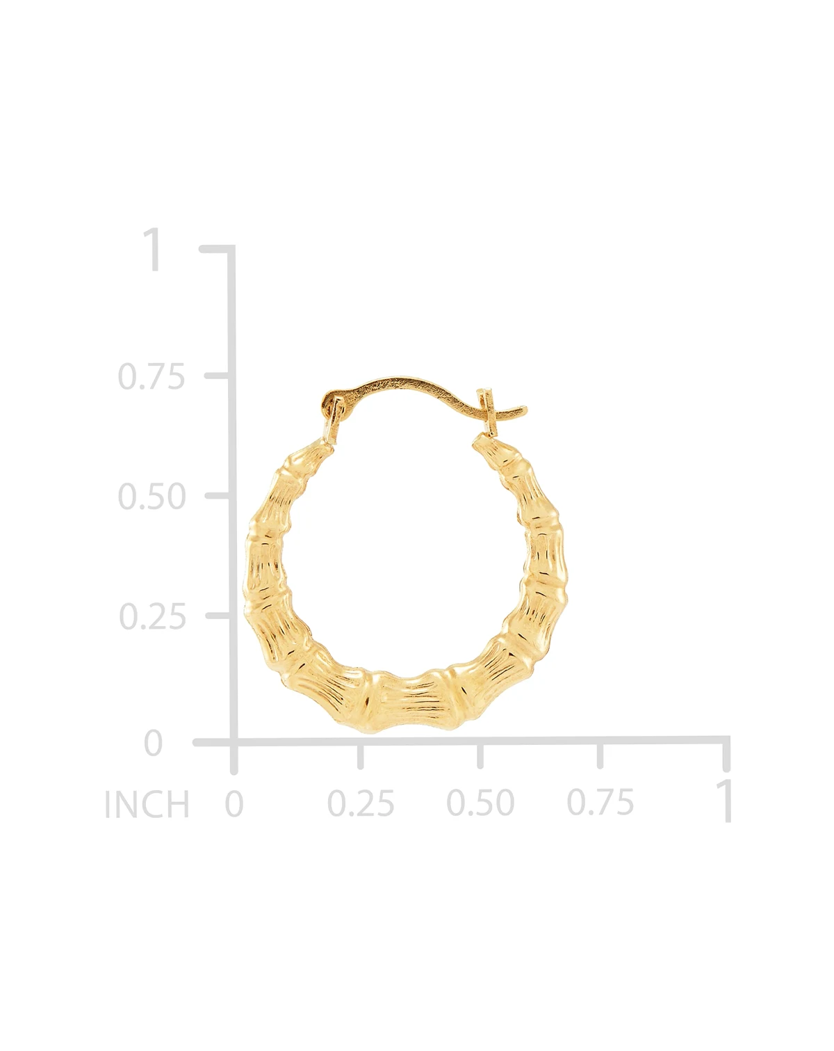 Textured Bamboo-Look Small Hoop Earrings in 10k Gold, 5/8"
