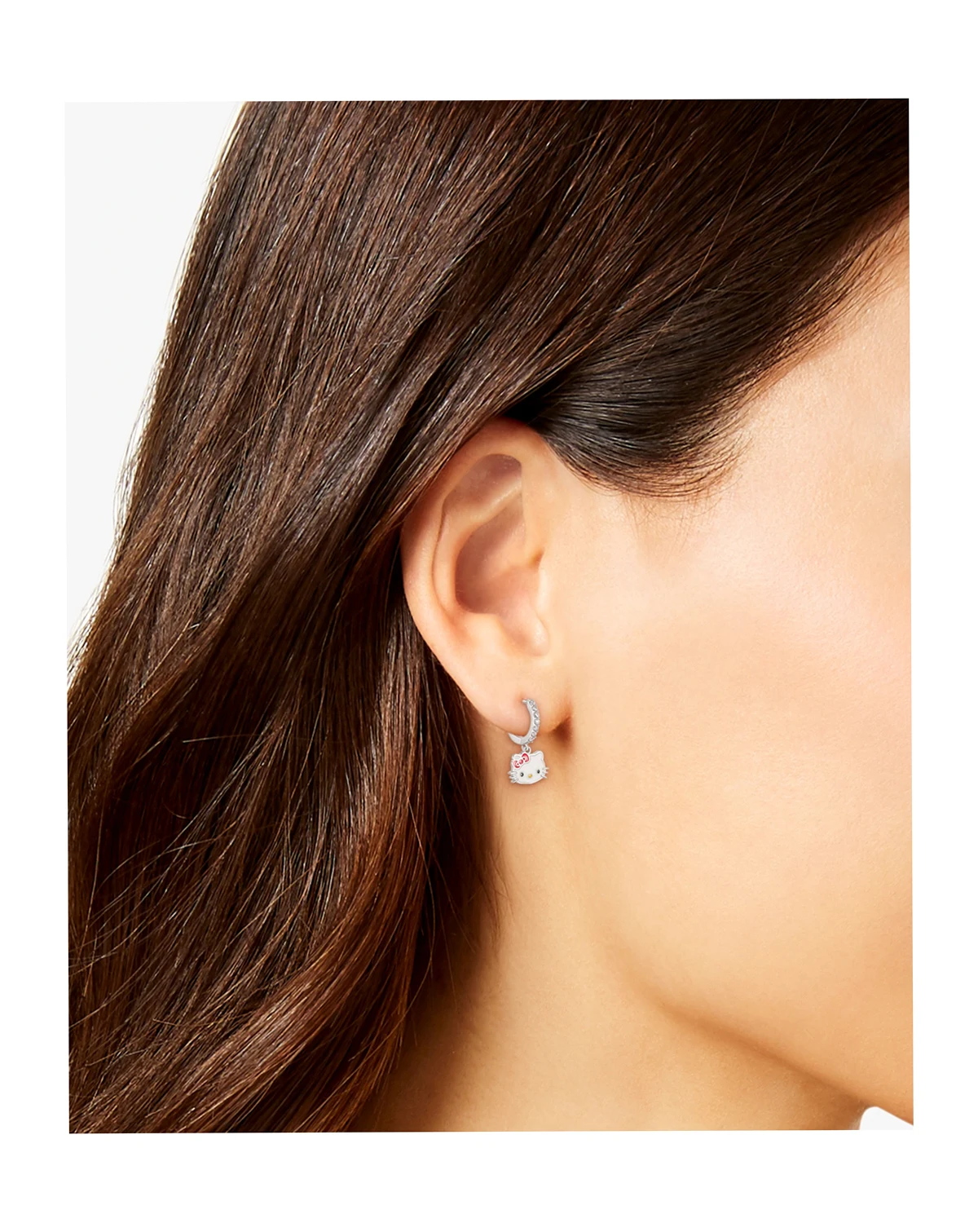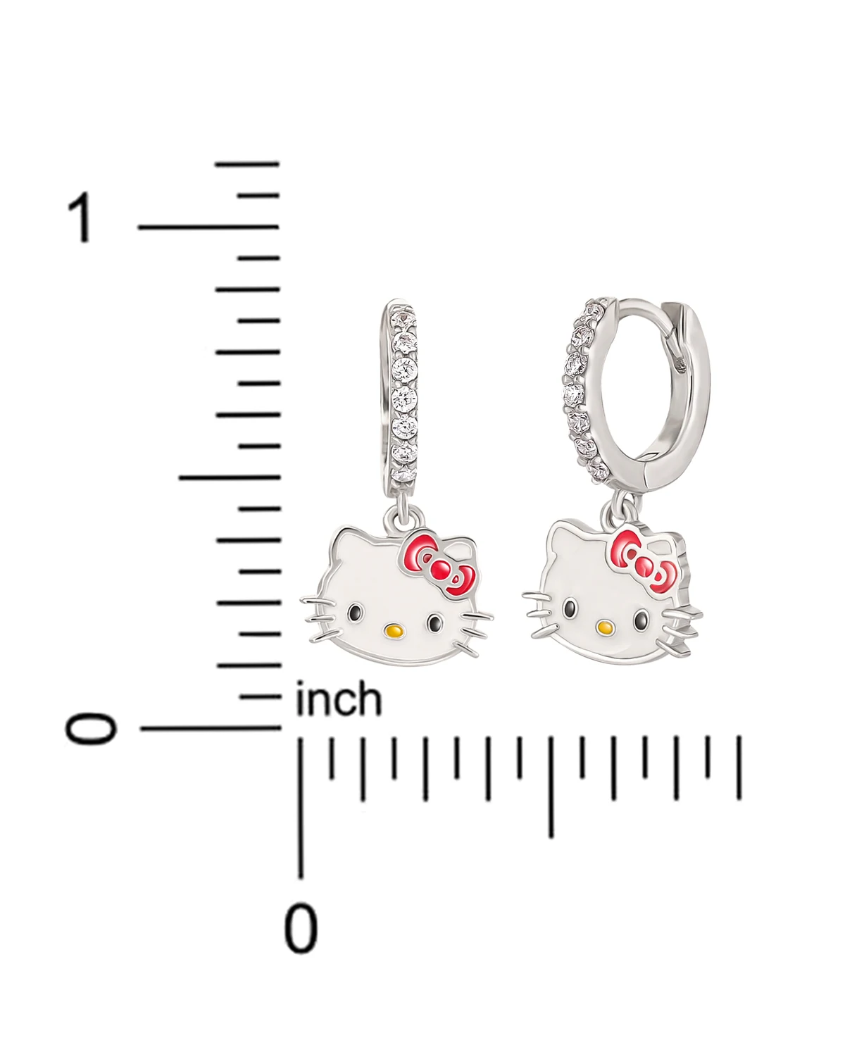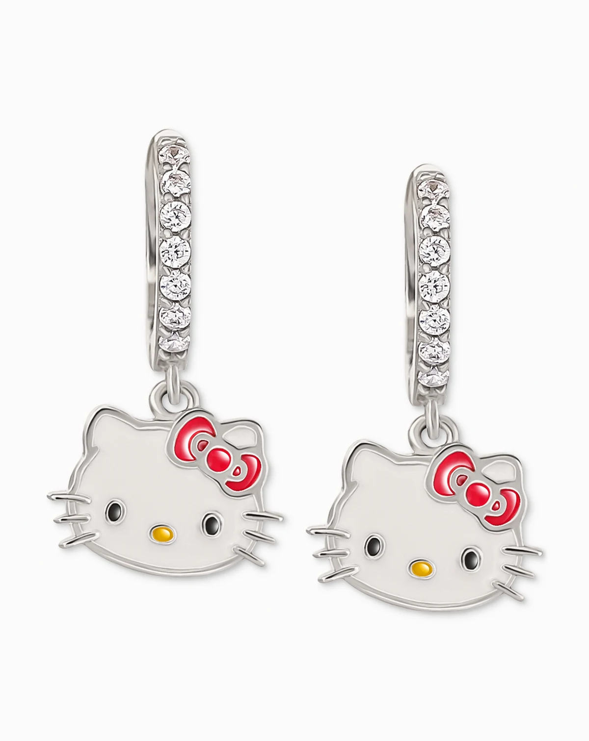 Cubic Zirconia & Enamel Hello Kitty Dangle Hoop Drop Earrings in Sterling Silver
