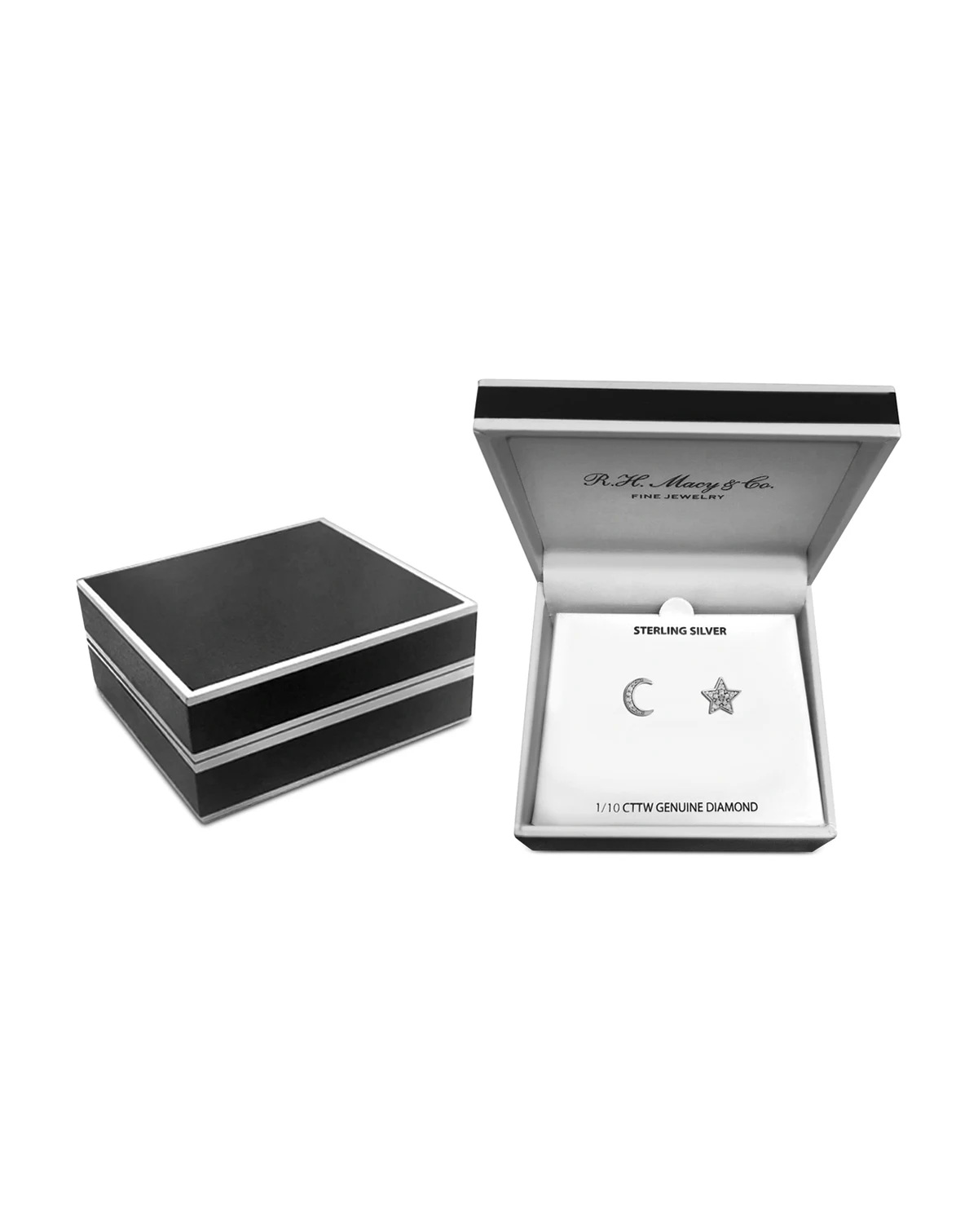 Diamond Moon & Star Stud Earrings (1/10 ct. t.w.) in Sterling Silver