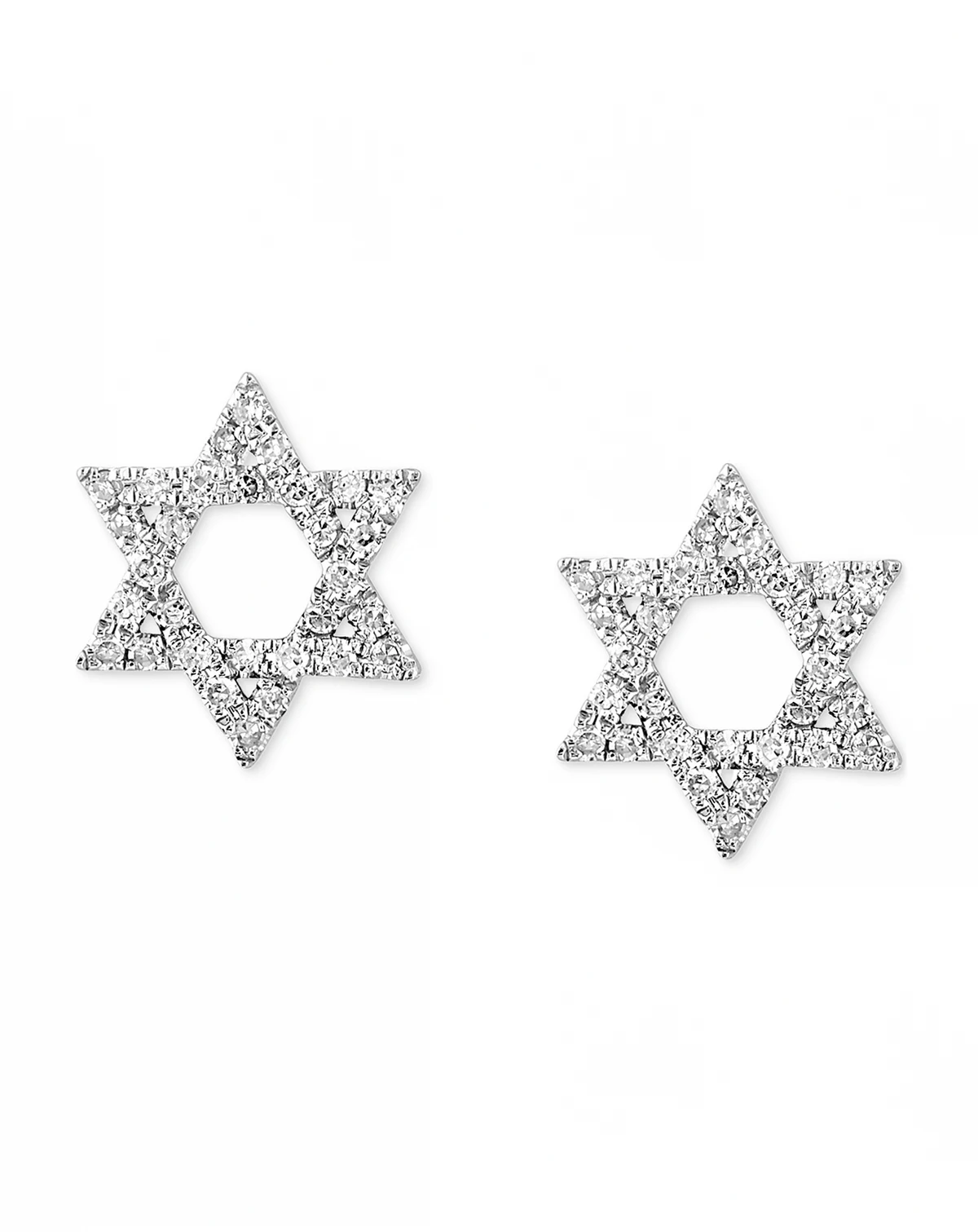 LALI Jewels bring sparkle and shine with diamond pavé Star of David stud earrings in 14k white gold.