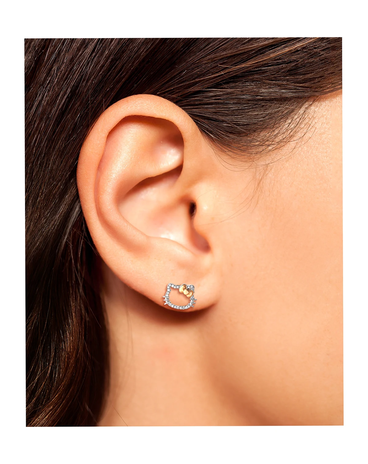 Look sweet and sparkly in these diamond silhouette Hello Kitty stud earrings.