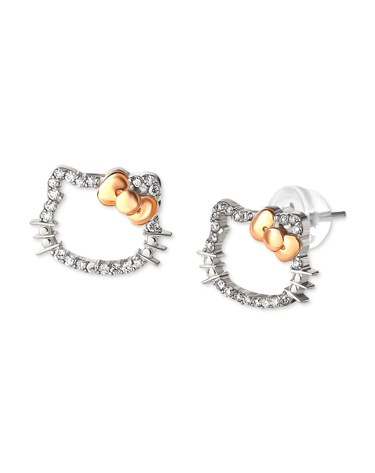 Hello Kitty Diamond Silhouette Stud Earrings (1/8 ct. t.w.) in 10k White & Rose Gold