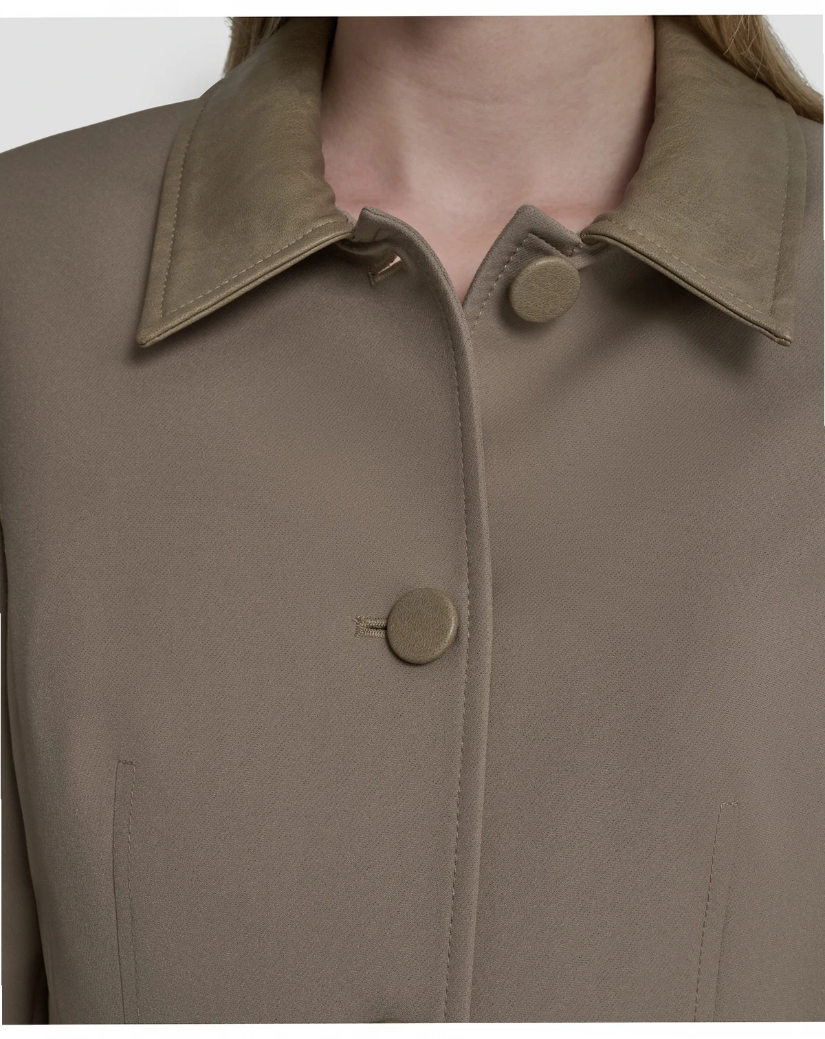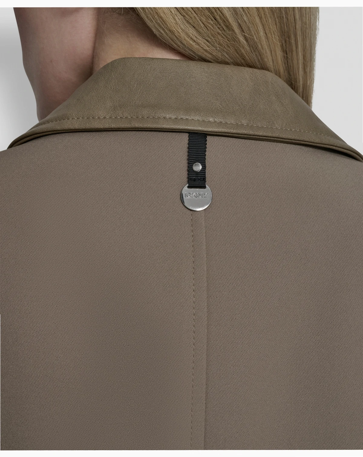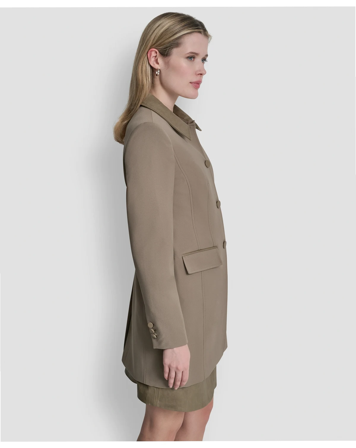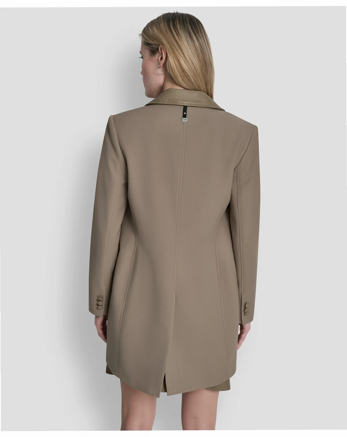 Add a contemporary polish to your look with this DKNY jacket, featuring striking faux leather collar details and a streamlined silhouette. Lightweight construction and sleek front pockets ensure you stay confidently on the move.