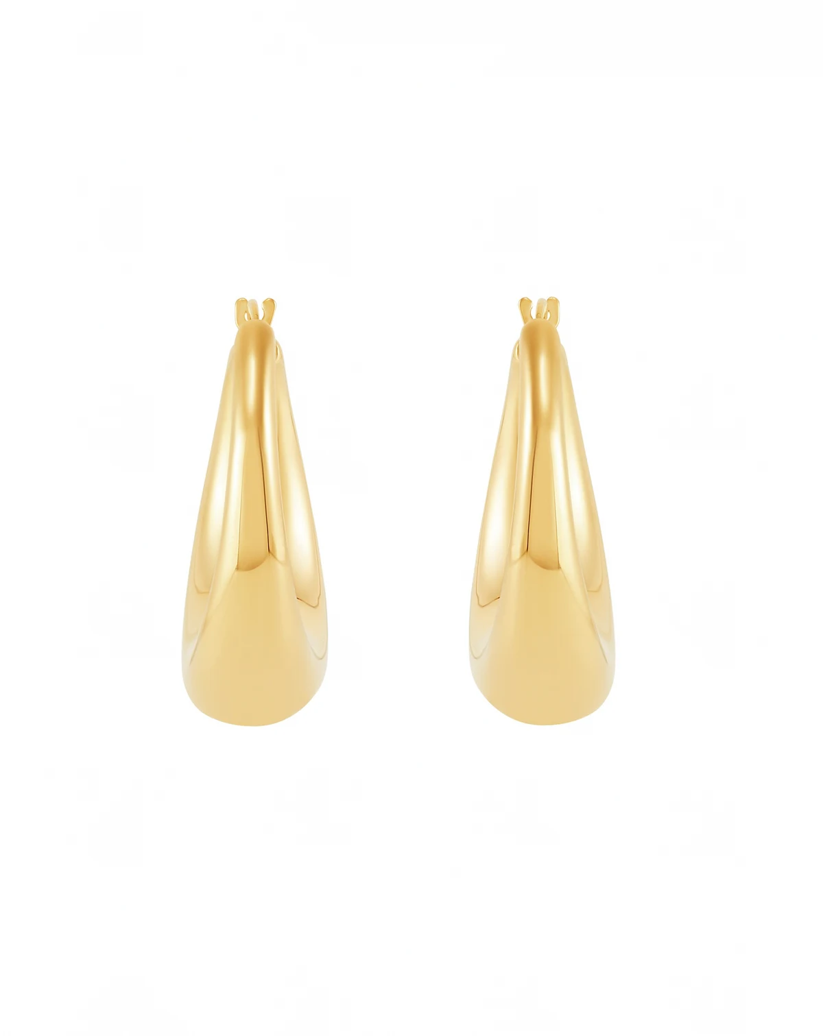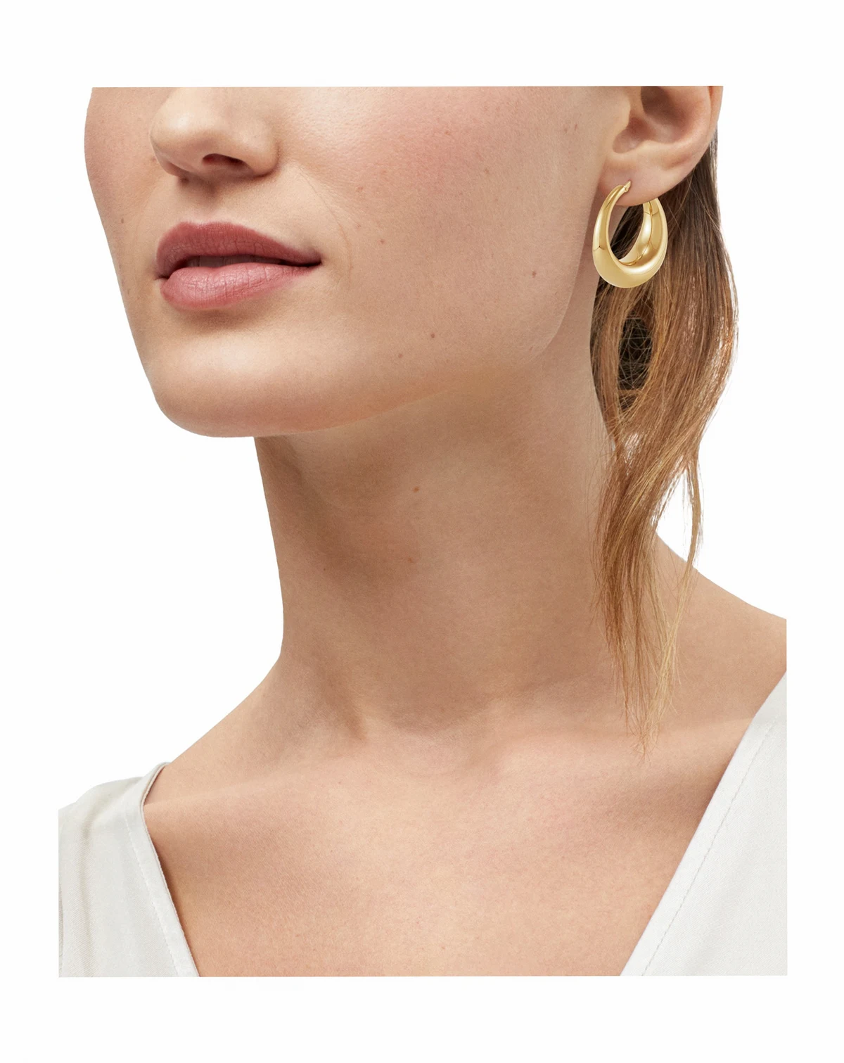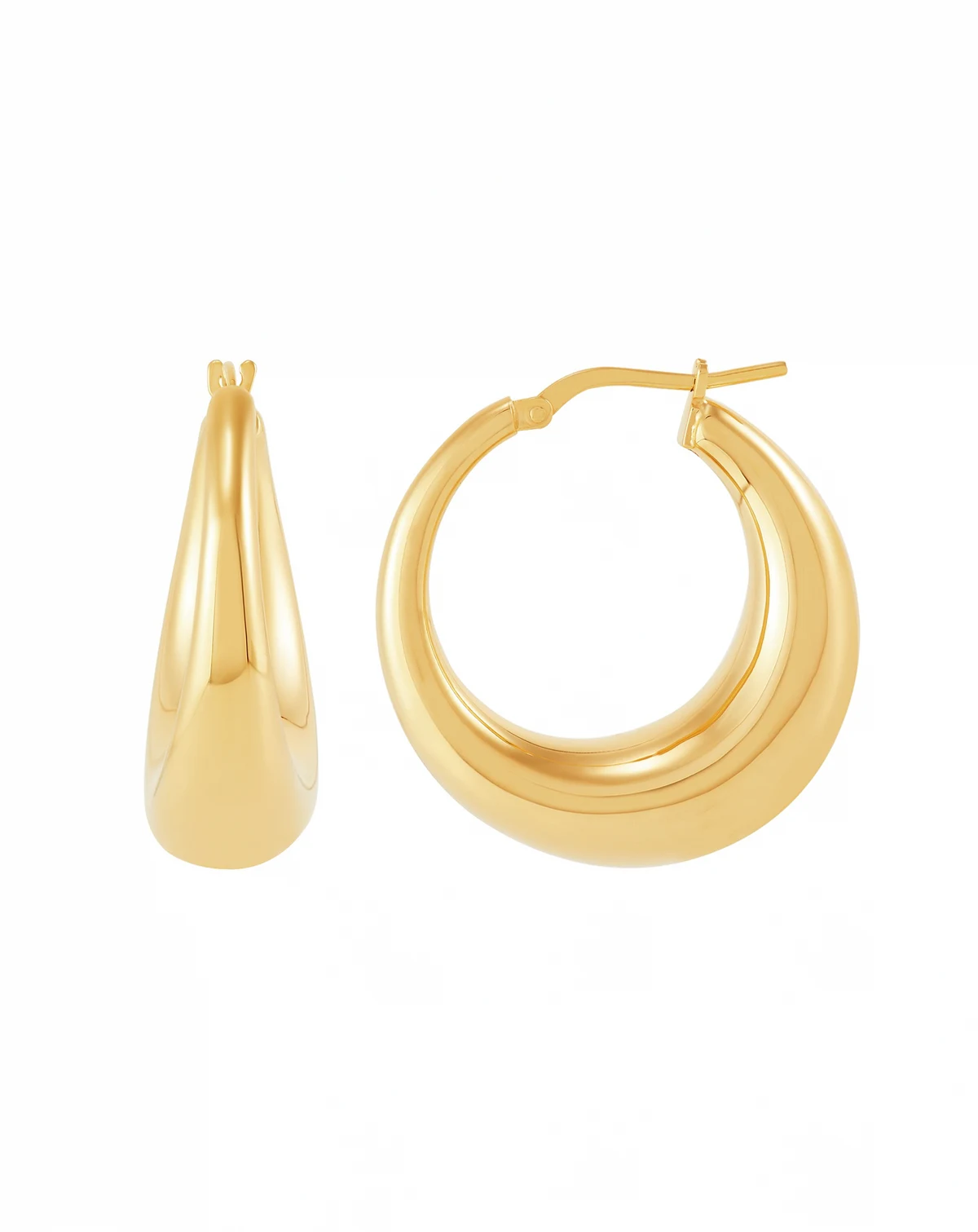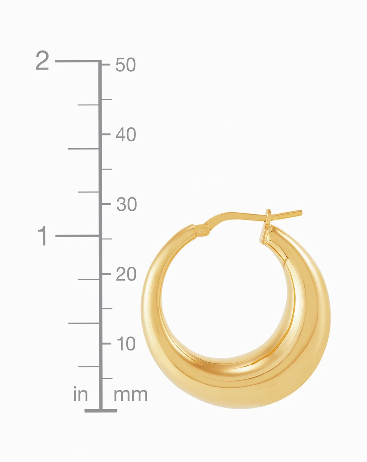 Crafted with a polished electroform design, these Italian Gold hoop earrings present a sleek and modern silhouette. A hinged catch closure ensures easy and secure wearability.