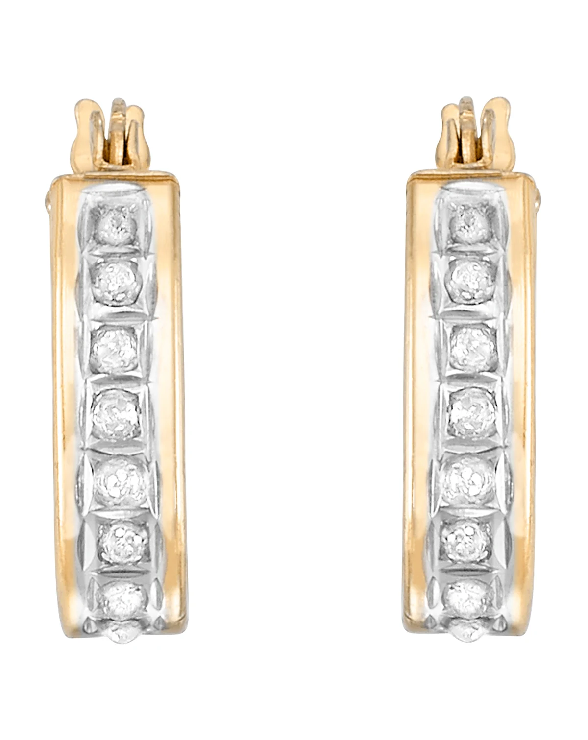 Diamond Accent Hoop Earrings (0.01 ct. t.w.) in 14k Yellow Gold Over Sterling Silver