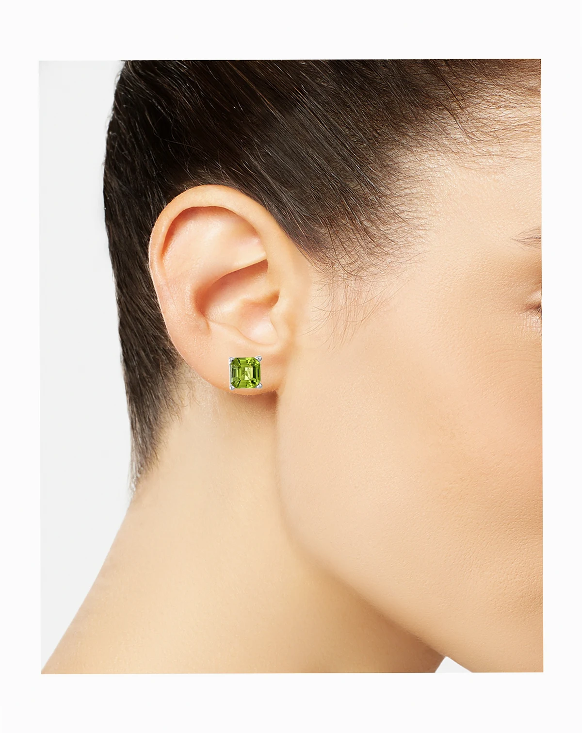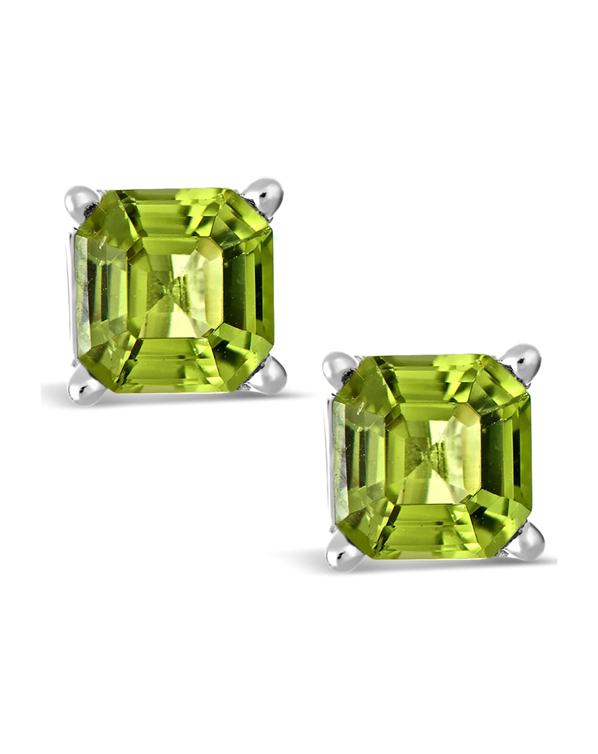 These elegant stud earrings are crafted in sterling silver and feature asscher-cut 6mm peridot gemstones. These classic earrings are comfortably secured with post back closures.