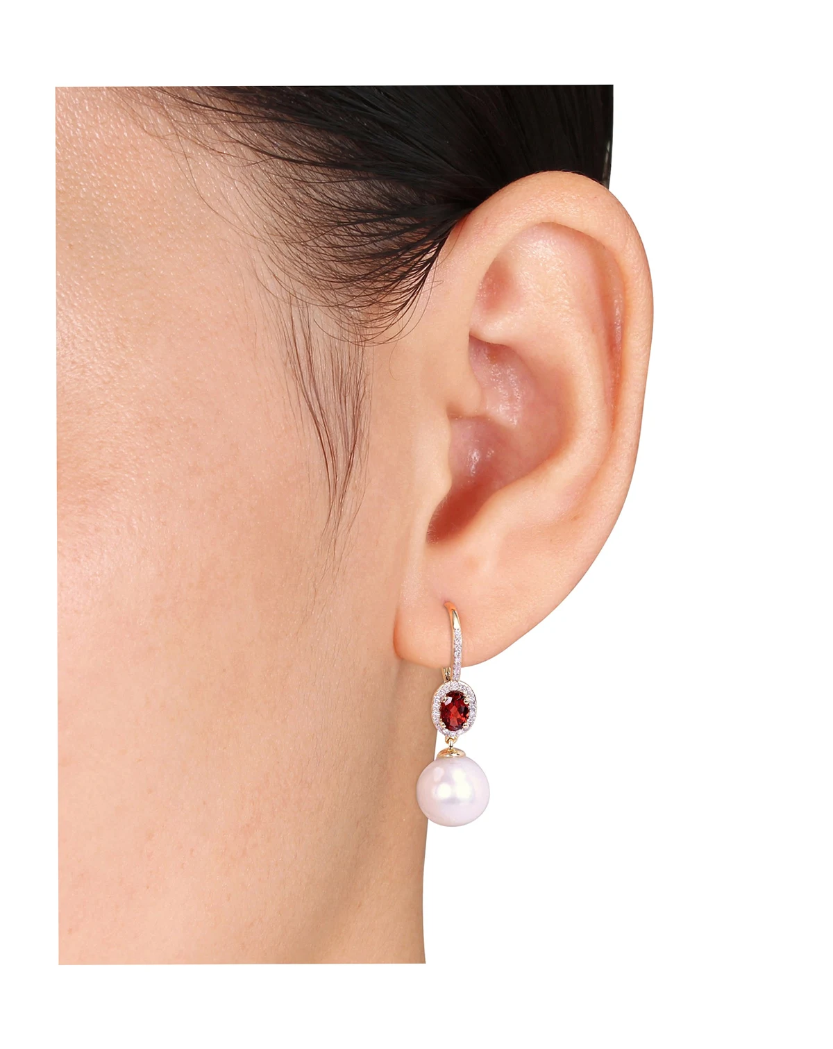 Freshwater Cultured Pearl (11-12mm), Garnet (1 1/10 ct. t.w.) and Diamond (1/4 ct. t.w.) Oval Drop Earrings in 10k Yellow Gold