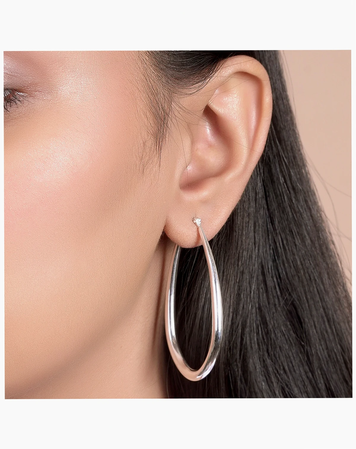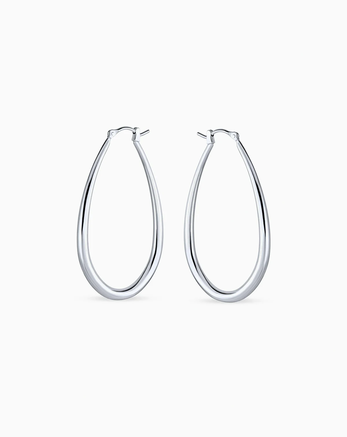 For a classically elegant look, our sterling silver, 2in long, oblong oval, hoop earrings are a must have. A striking, modern design and finished in radiant sterling silver.