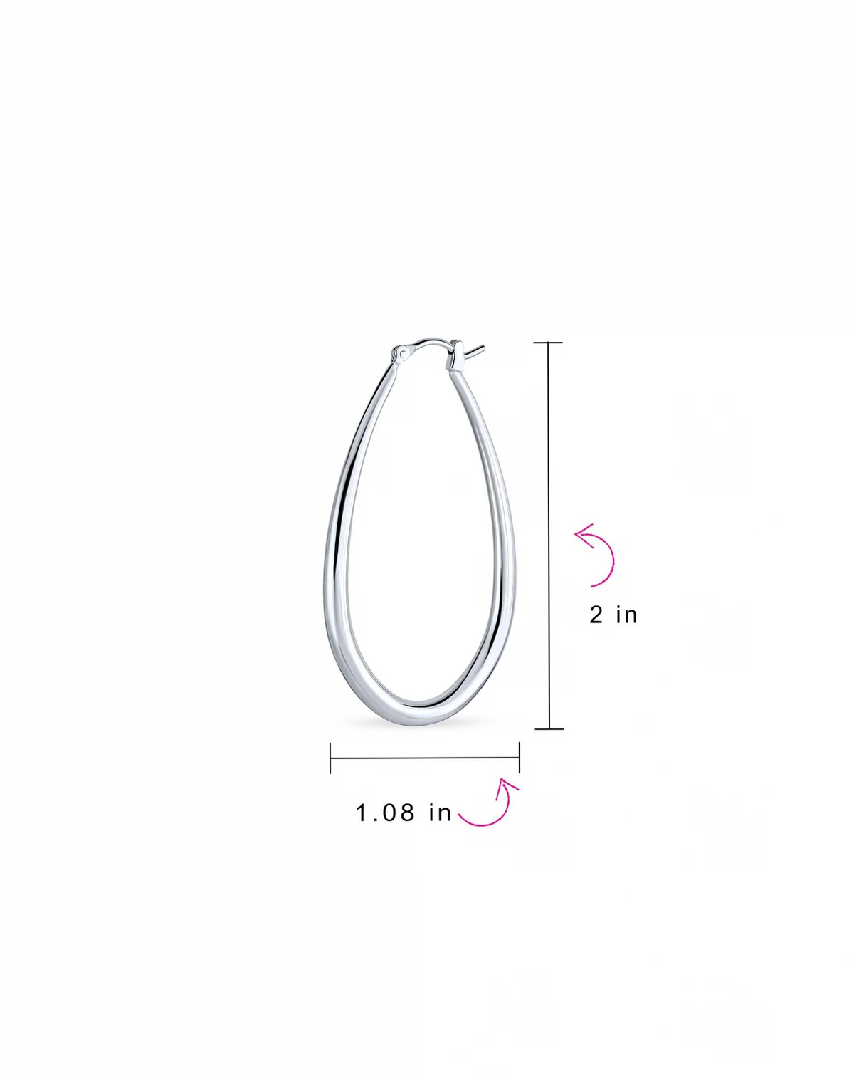 Large Oval Tube Hoop Earrings 2 Inch .925 Sterling Silver Snap Hinged Post