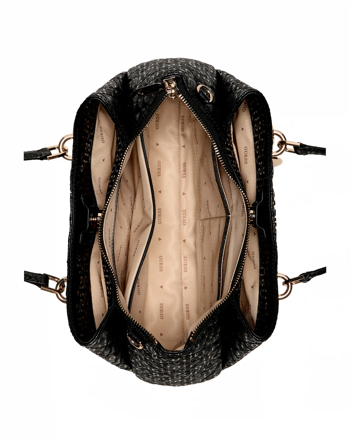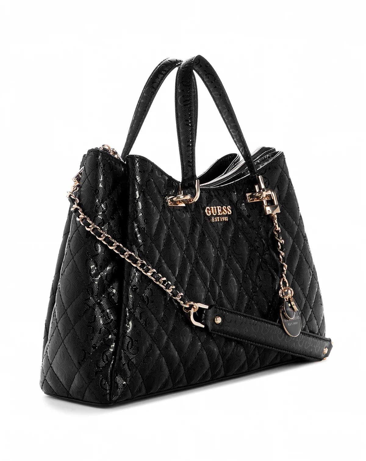 Showcasing a signature G-Shine finish, the Isemay girlfriend satchel from GUESS offers a structured and eye-catching design. A top zip closure and detachable shoulder strap provide both style and versatility.