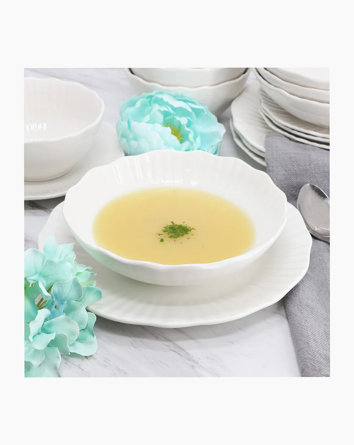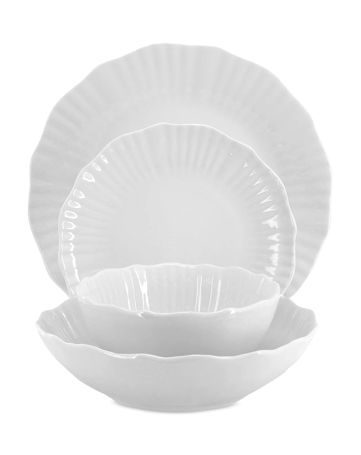 Bring elegance to your table settings with the sleek design and refined details of the Sirius 16-piece dinnerware set from Elama. The high-quality porcelain design features a delicate ribbed pattern and a crisp white finish, making this set perfect for both casual dining and special occasions. Pieces are also stackable for space-saving storage.