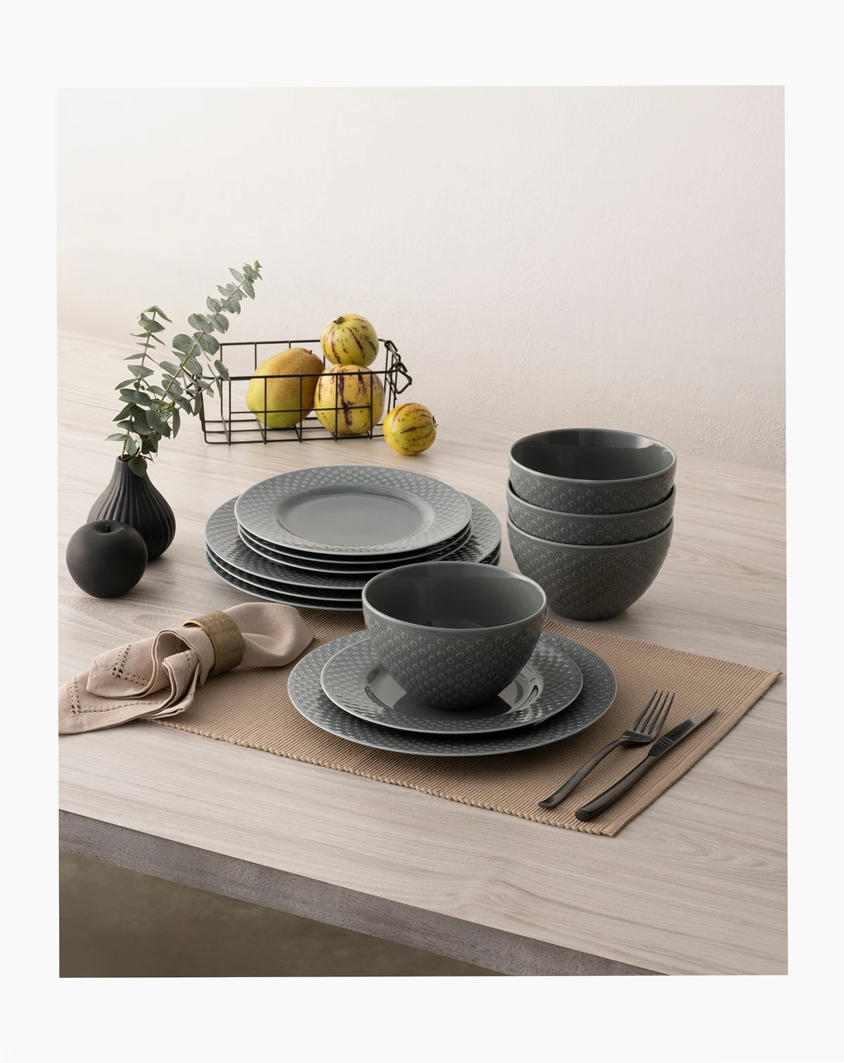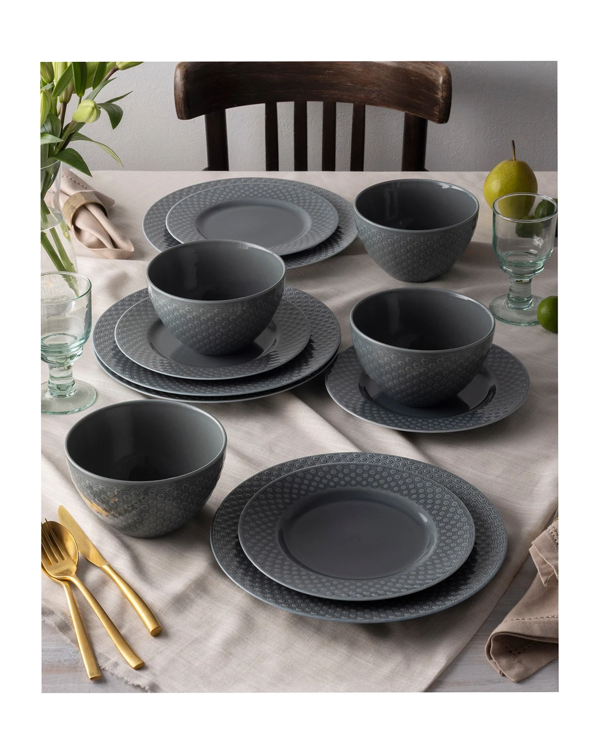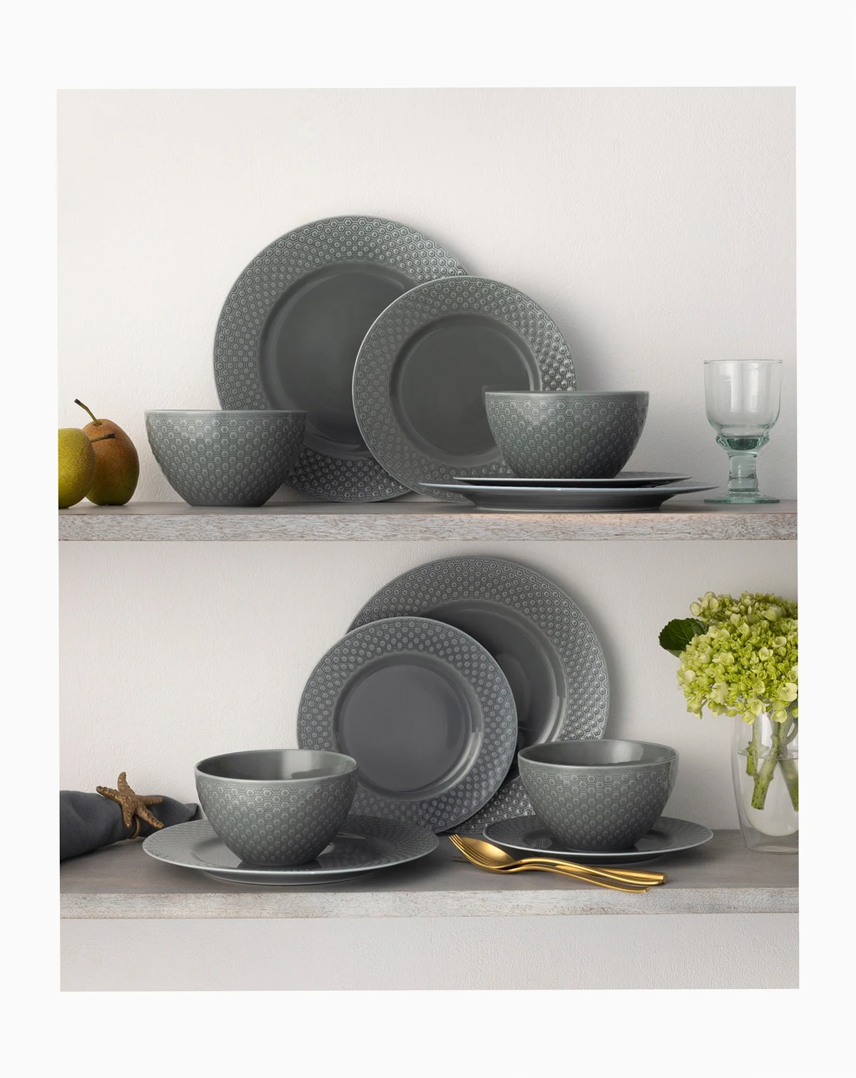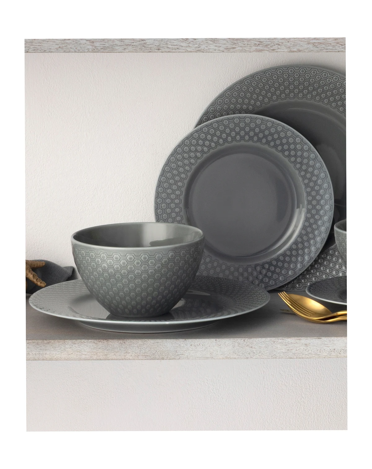 Dinner plate dimensions: 10.5''L x 10.5''W x 1''H; approx. weight: 1.38 lbs.; Salad plate dimensions: 8.25''L x 8.25''W x 0.75''H; approx. weight: 0.75 lbs.; Bowl dimensions: 6''L x 6''W x 3.25''H; approx. weight: 1.0 lbs.