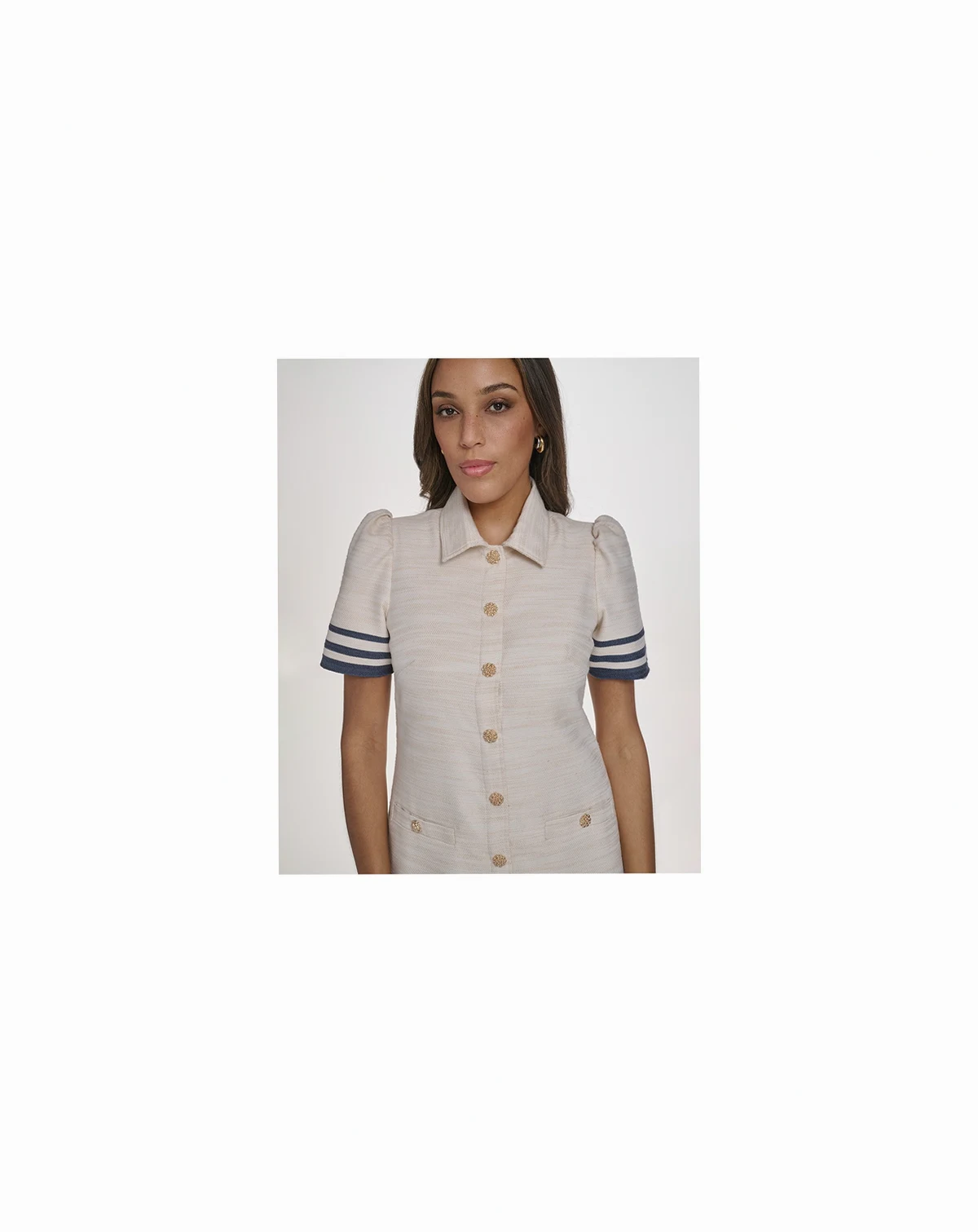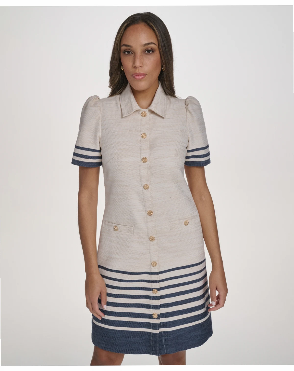 Step into casual chic with Eliza J collared shirt dress designed with short sleeves and a snap front closure. The knee-length silhouette offers effortless style for everyday occasions.