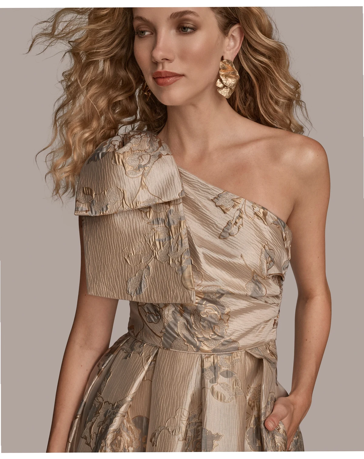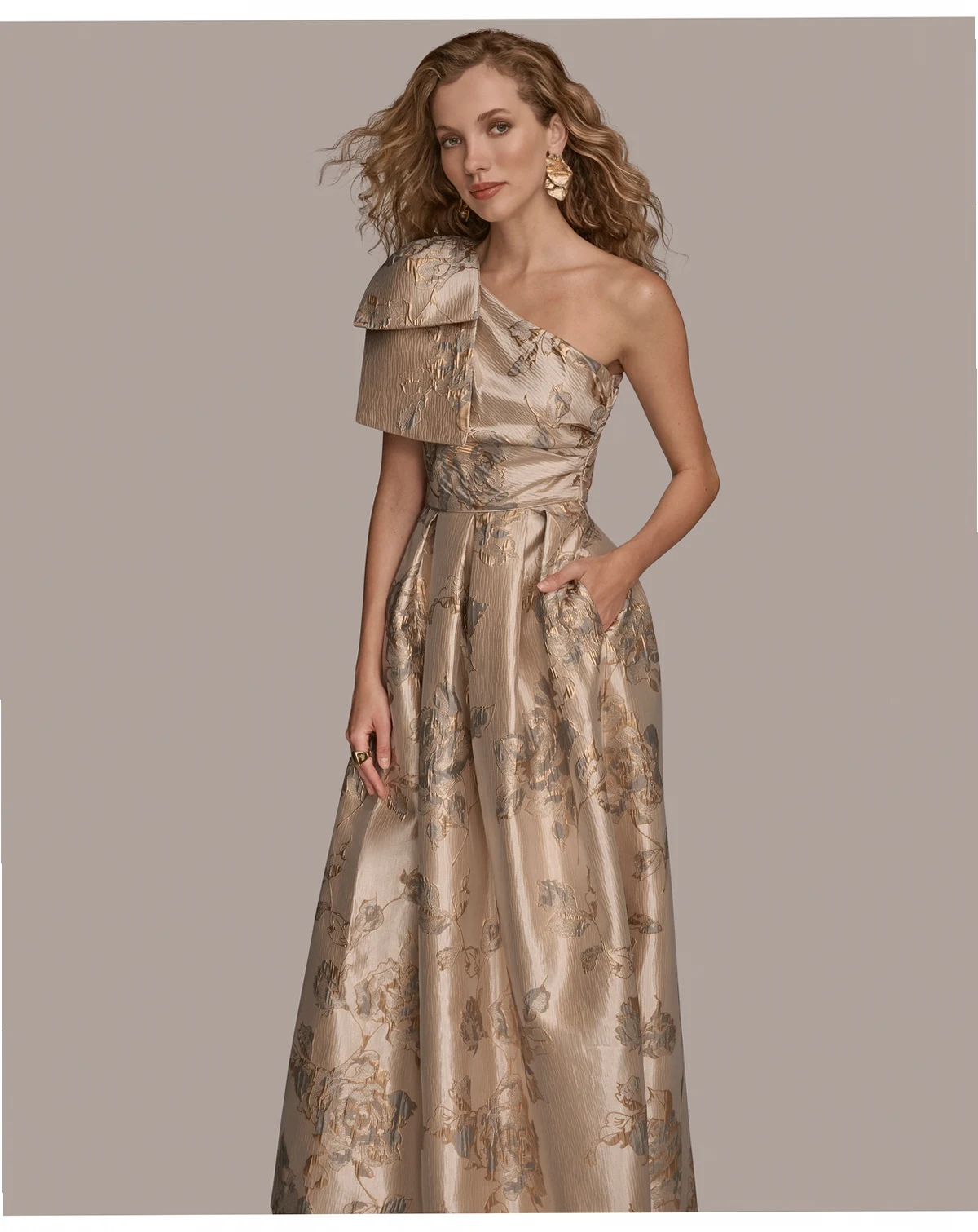 Exuding confidence with a one-shoulder design, this ball gown from Donna Karan New York offers a stunning silhouette that flatters every curve. The elegant bow detail makes a lasting impression at galas or weddings.